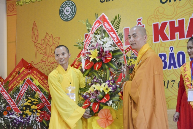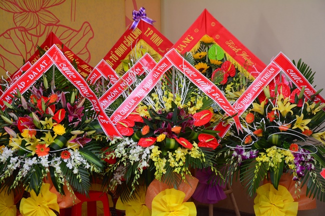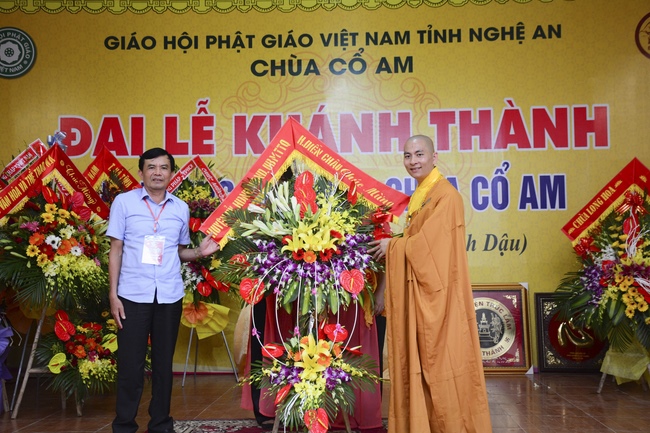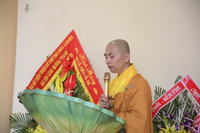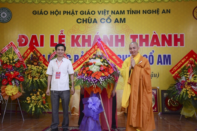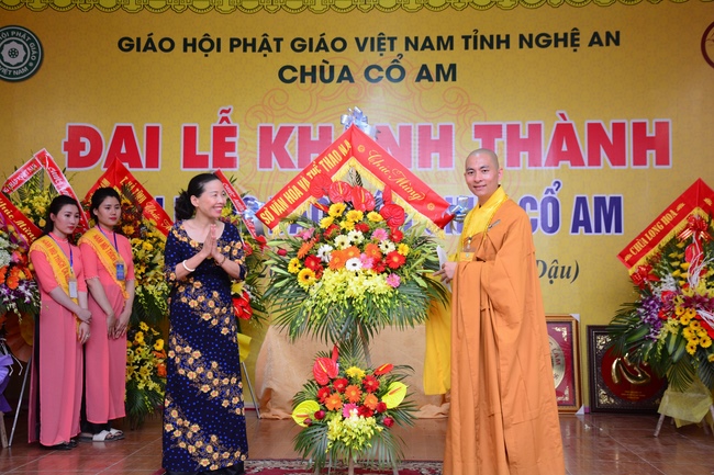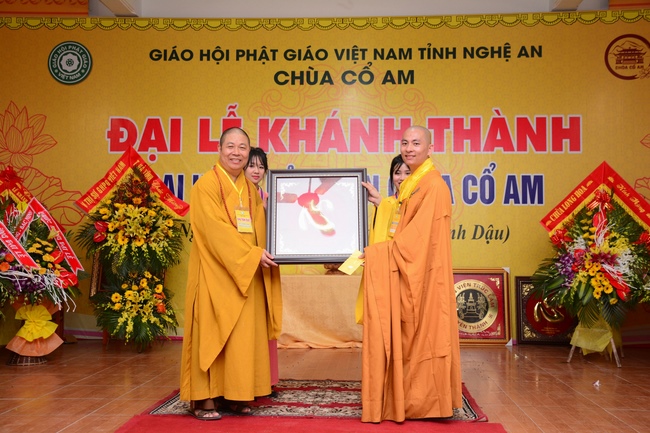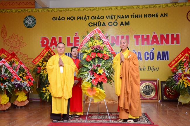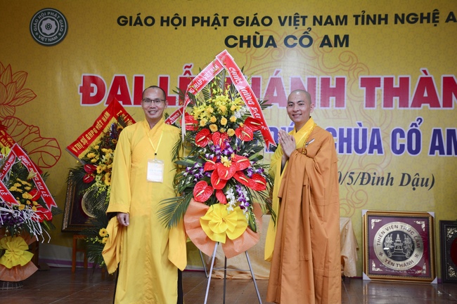 Congratulations to the inauguration of Co Am Temple, a large branch of Hoang Phap Pagoda in the North Central, Venerable Thich Tam Dao and Venerable Thich Tam Hoa. Congratulations, Venerable Thich Tam An has donated flower bouquets of Hoang Phap pagoda’s branches in the country and Venerable Thich Tam Truc, on behalf of overseas branches, donated flowers to congratulate the Abbot of the Pagoda.