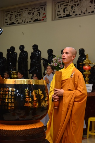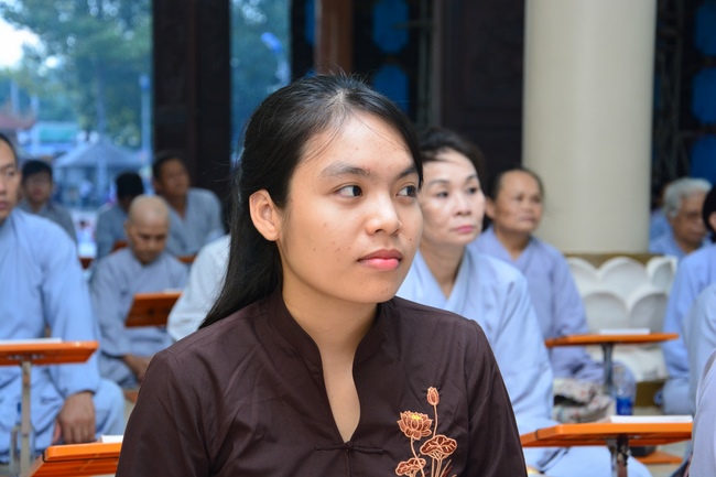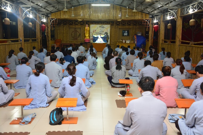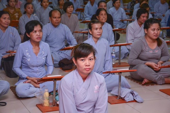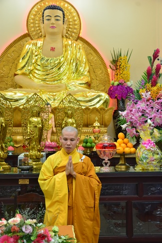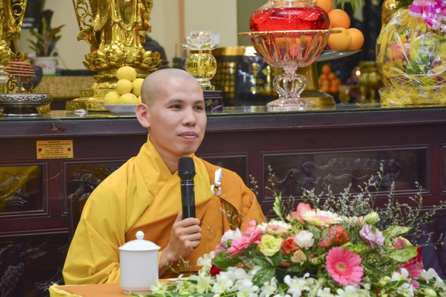 This time, Venerable Thich Tam Manh, monk from Hoang Phap Sangha, delivered the Dharma talk with the topic "Offering Joy".