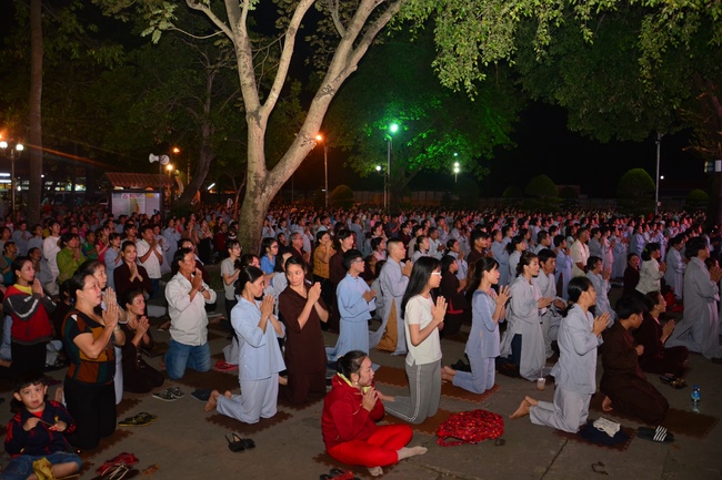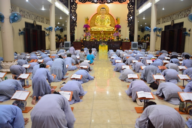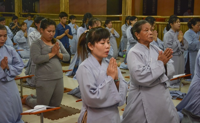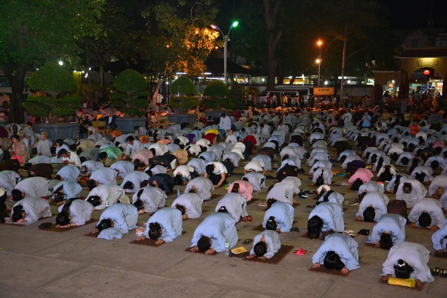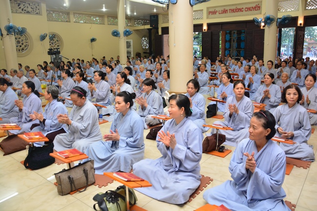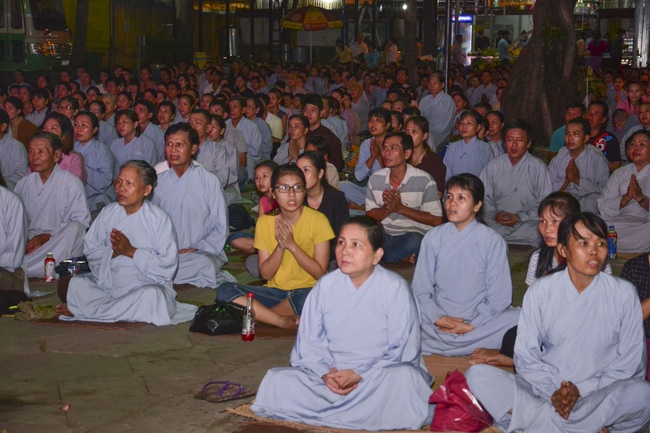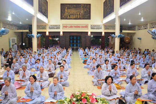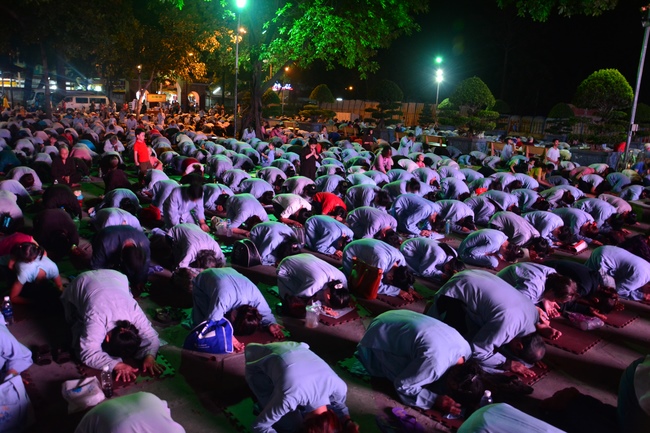 In the evening of Aug 21, 2017 (Jun 30, leap month, lunar calendar), devout Buddhists from Ho Chi Minh City and other regions came to Hoang Phap Pagoda to attend the regular penitent ceremony.