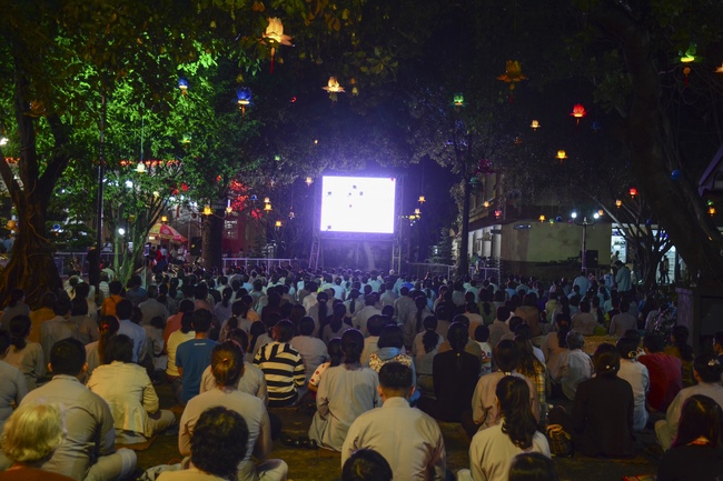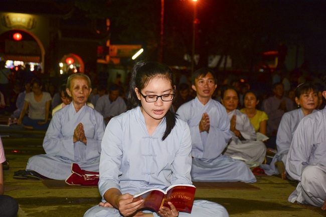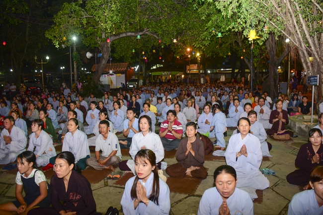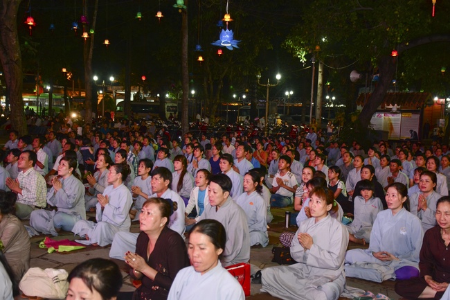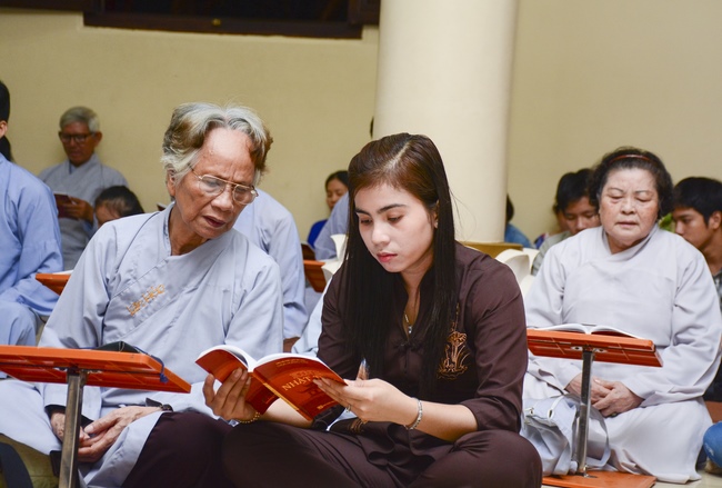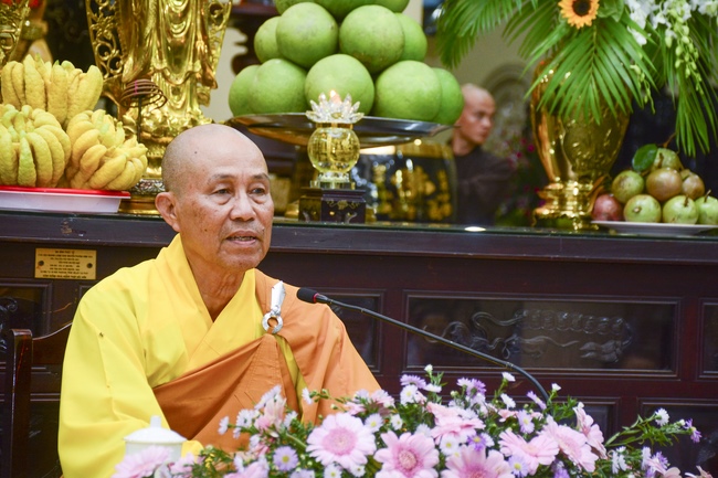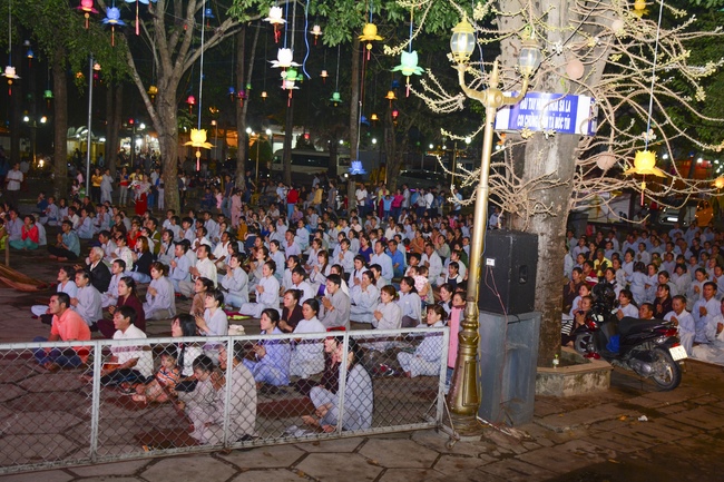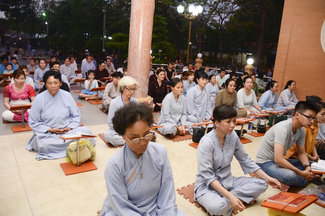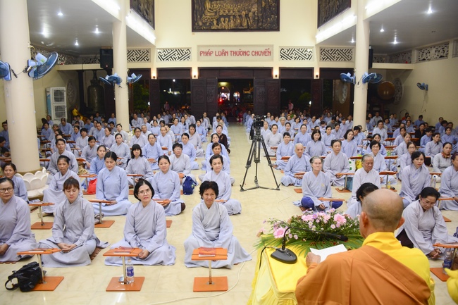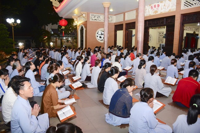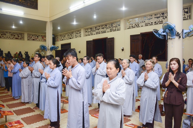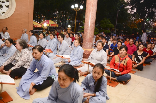 After reciting Buddha’s name for his witness and blessing, the mass listened to the Dharma talk from Reverend Thich Tam Dien, monk of Hoang Phap pagoda, with the topic: "Practicing, is it difficult or easy?"