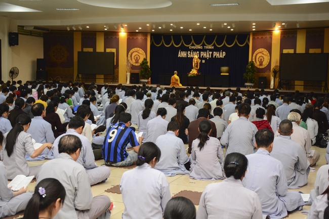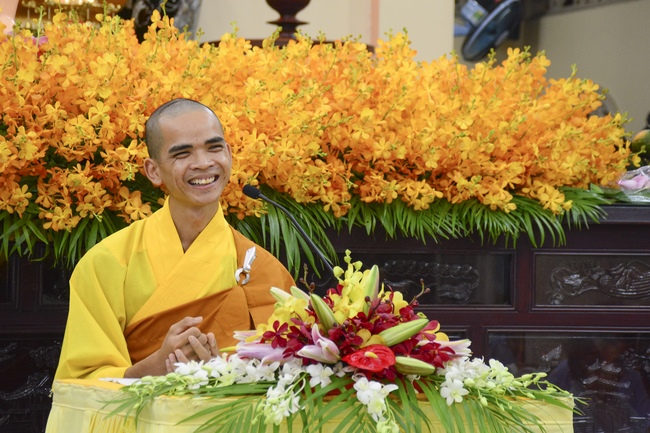 This time, Venerable Thich Tam Trong, deputy abbot of Hoang Phap pagoda gave the Dharma talk with the topic: "Teacher’s Merit".