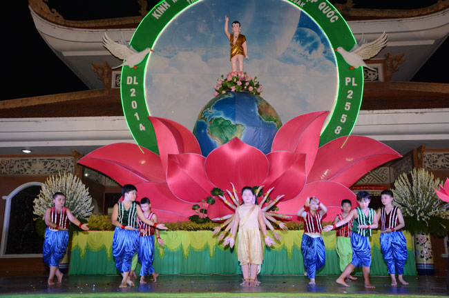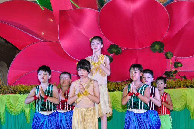 Among the activities in honor of Vesak, on the evening of 14th, May 2014 (16 April, the year of the Horse, lunar calendar), a program of performance evening was organized at Hoang Phap Pagoda by young members of The Buddhists Family.