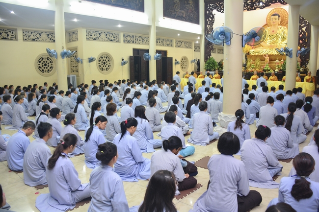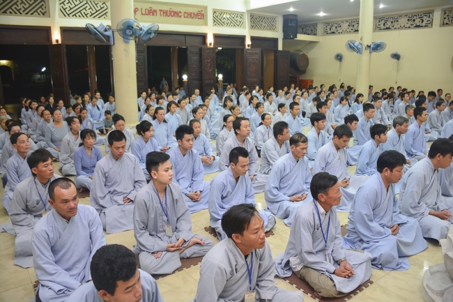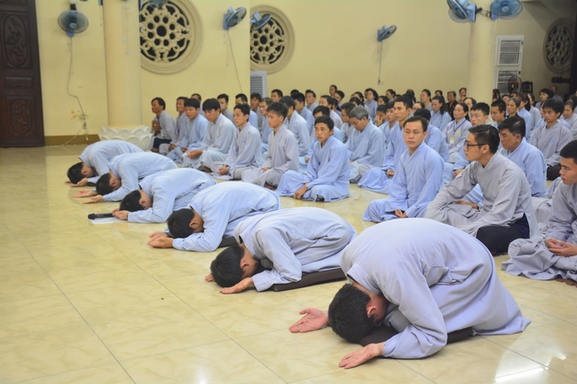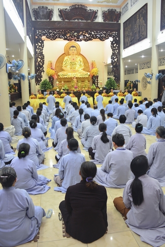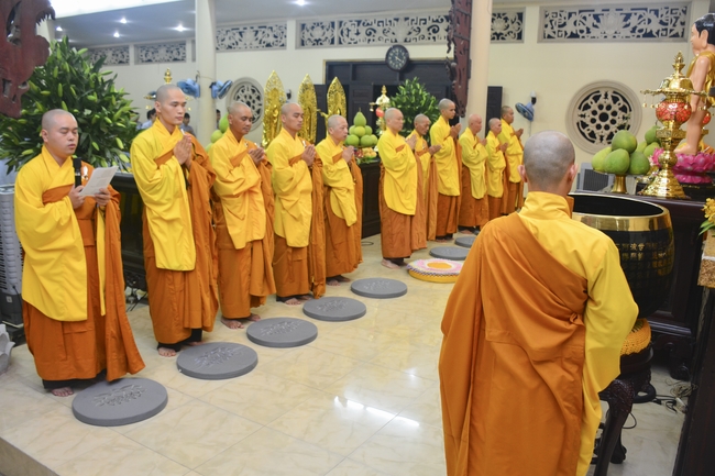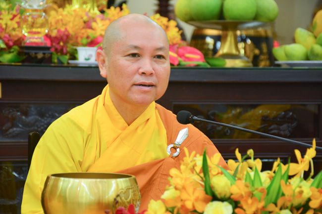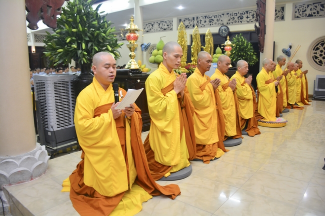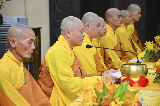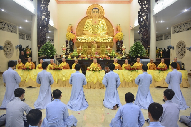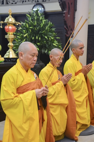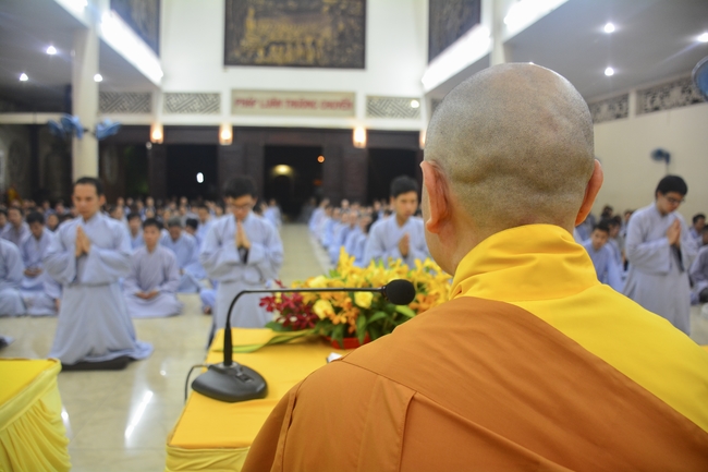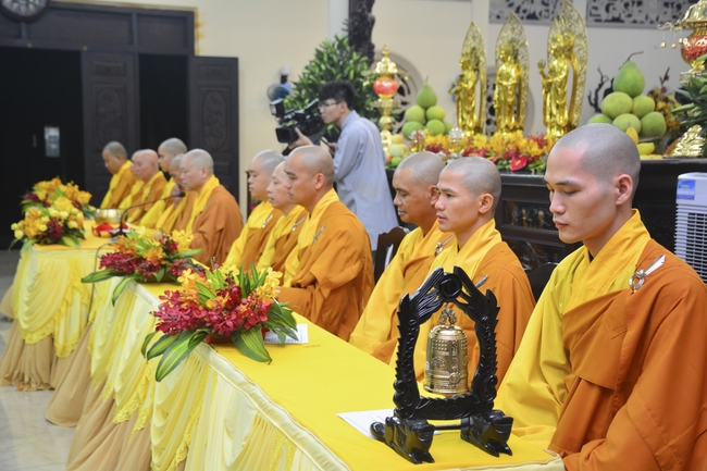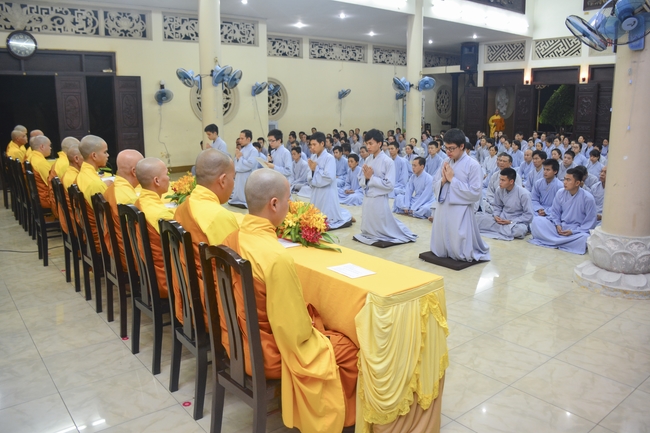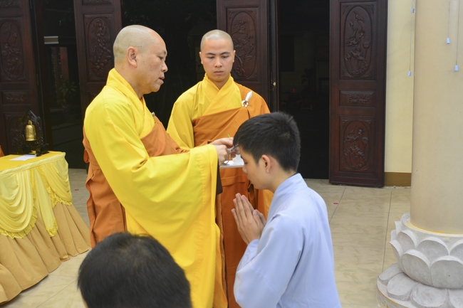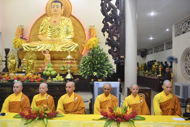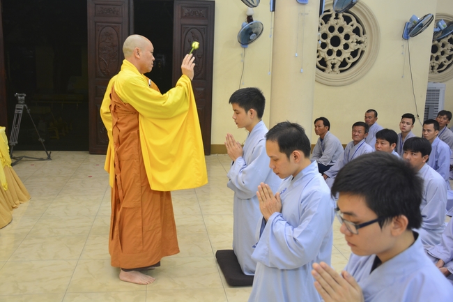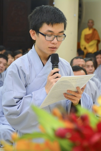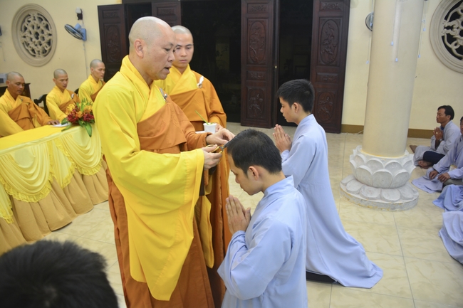 At the celebration, after the monks offered the incense to the Buddha, theirrepresentative invited the Venerables, the monks to have the witness words. Responding to their request, Senior Venerable Thich Chan Tinh had some instruction to them before the celebration. In his teachings, he explained the meaning of home-leaving monks. In this sense, each home-leaving monks had to be aware and practice the three studies (Discipline-Meditation-Wisdom), the preceptsof which is the first. By this, the Venerable indicated the value of precepts, ethics in the monk’s life. Especially, he noticed that the future monks were the middle - honoured one, “The sons of Buddhaâ€, “The principle to the Dharmaâ€. Those words showed the important roles of the home-leaving monks in the mission of spreading the Drama of the Tathagata.