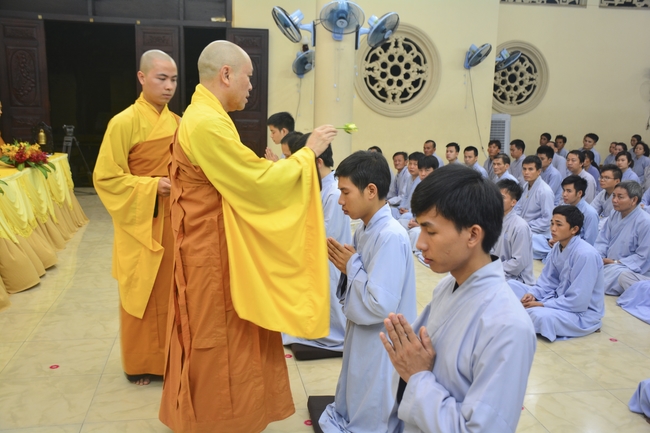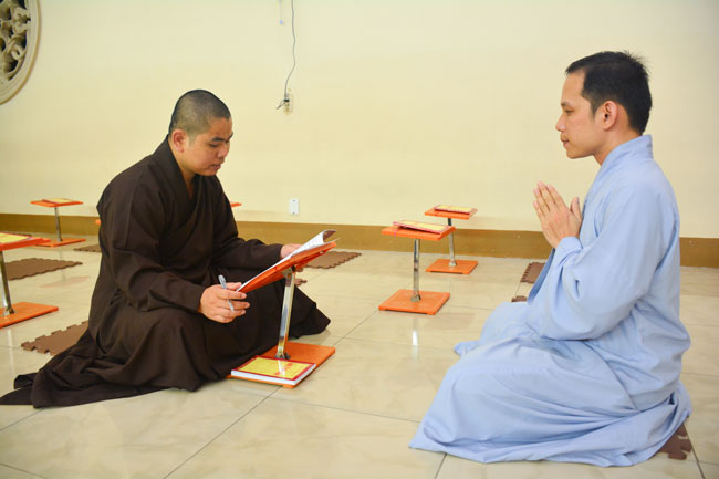 In order to be a monk and practice at the Pagoda, they had to spend at least six months without breaking 32 rules of the Pravraj. Besides, they had to learn by heart the chanting time of evening, night labor, noon offering, rite of the bowl offering, and know how to use dharma instruments. Before being accepted to have Pravraj, they had to do the test about Sutra and their manners.