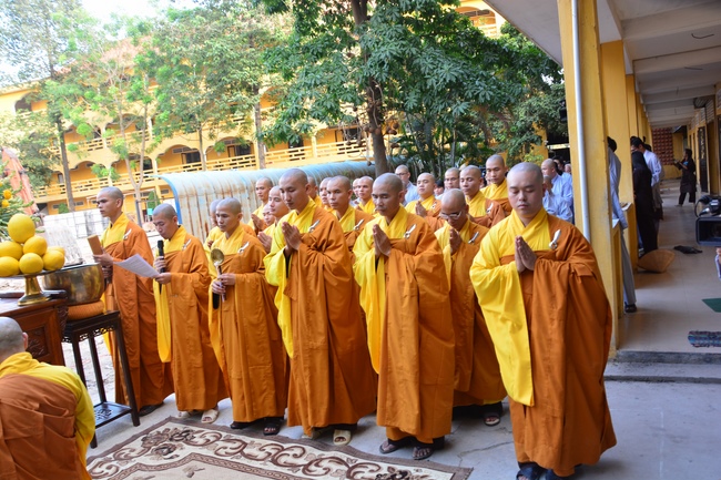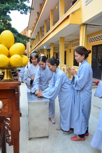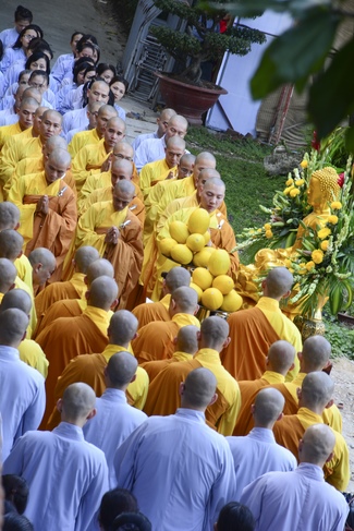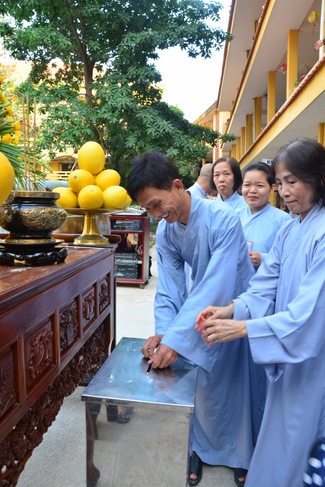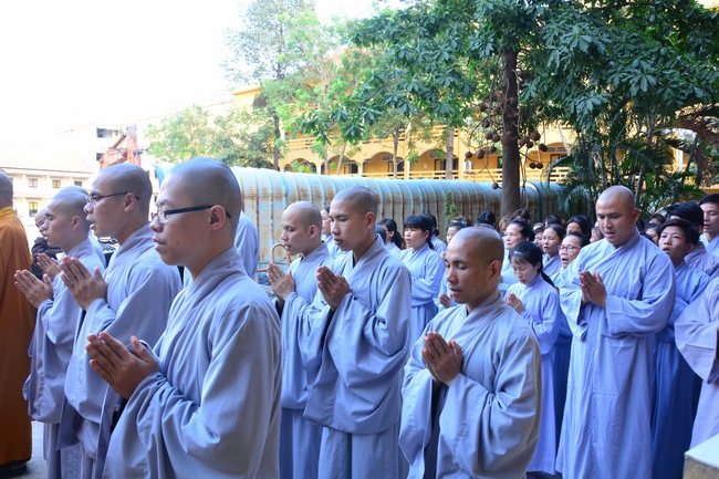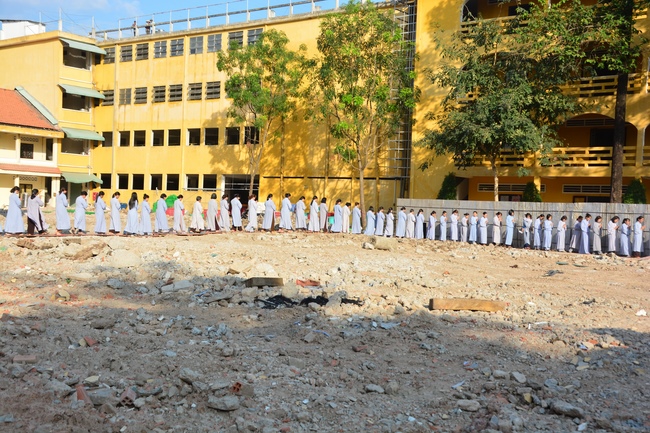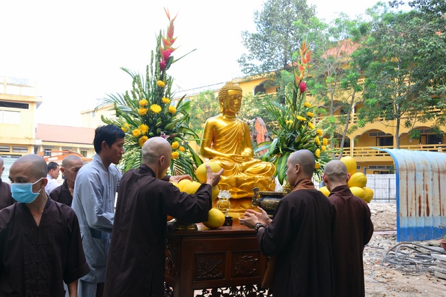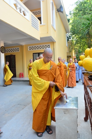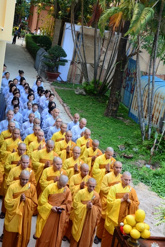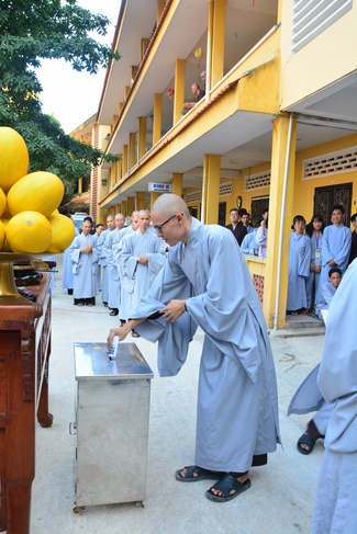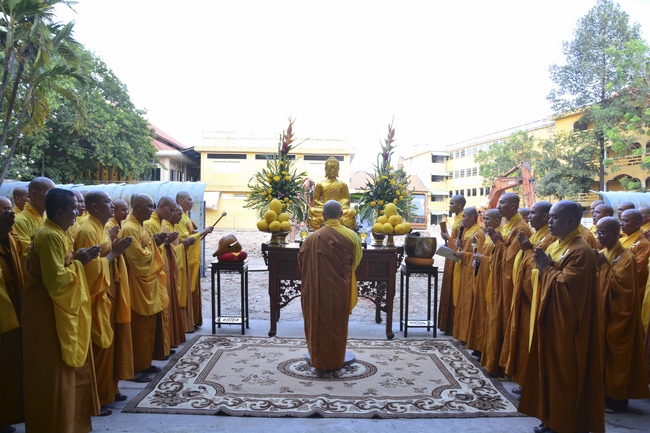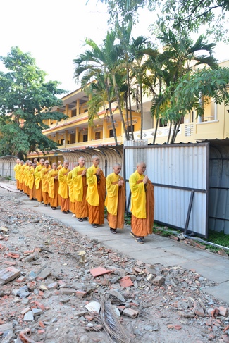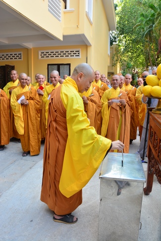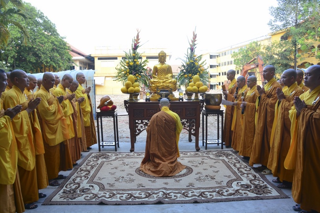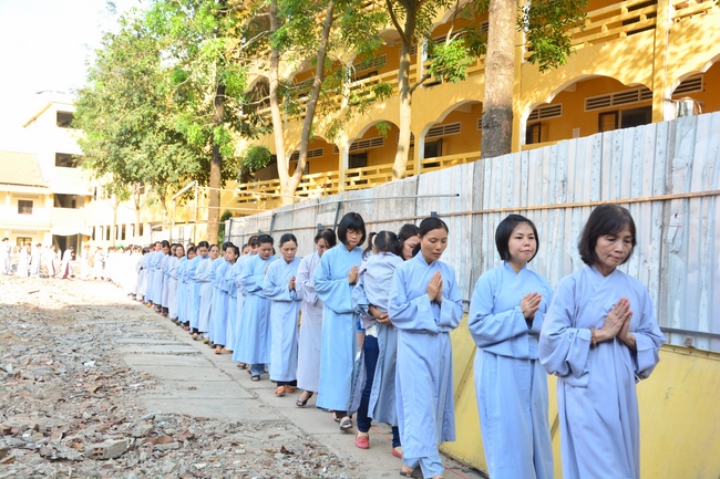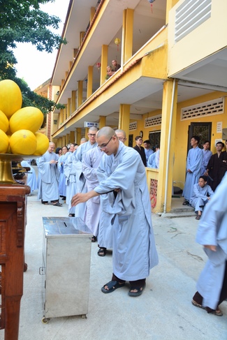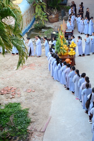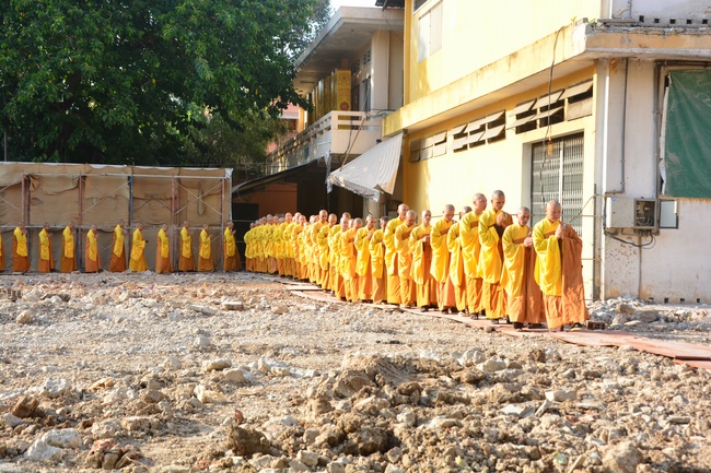 After offering incense to pay homage to Buddha and chanting rite, the sangha and Buddhists recite Buddha’s name while walking around the construction field. After that, The Venerable Abbot opens the donation for the building construction with his offering, then follow the monks and Buddhists. All have the same wish for the best fulfillment of the project.