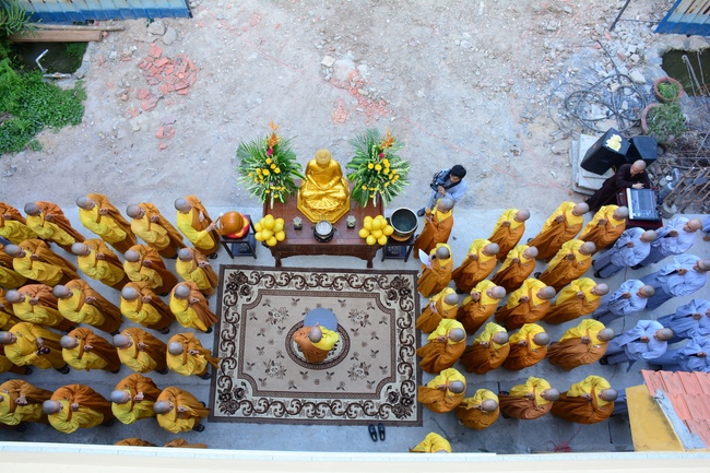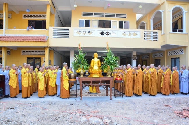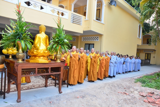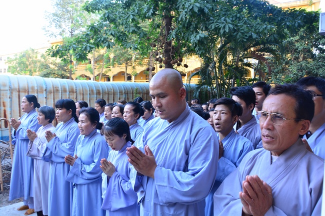 Today Feb 11, 2017 (Jan 15, lunar calendar), Senior Venerable Thich Chan Tinh, monks and Buddhists at Hoang Phap pagoda together pray for the construction of the multi-functioned building before starting the project.