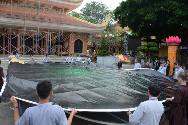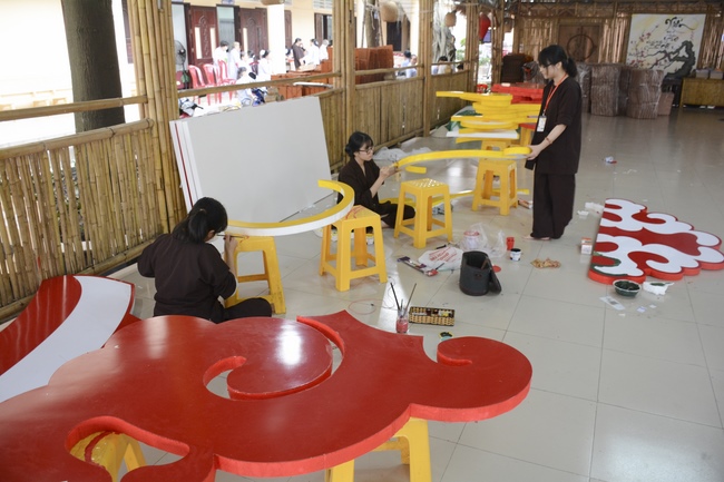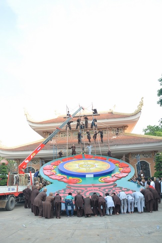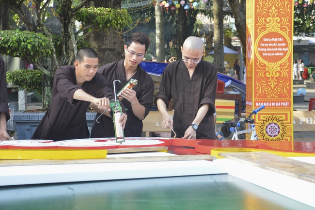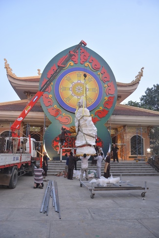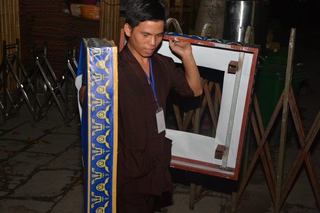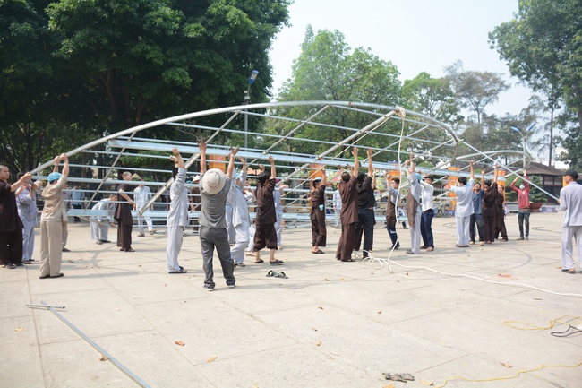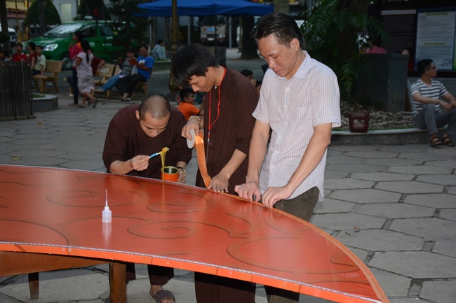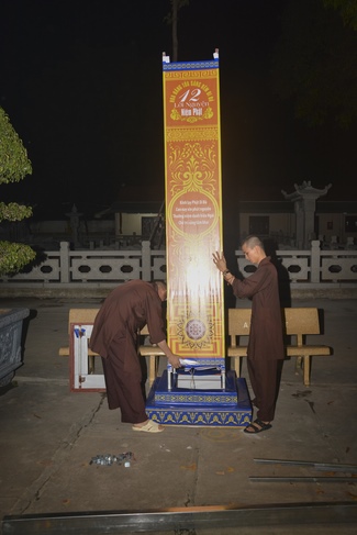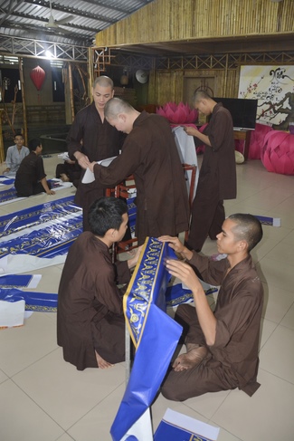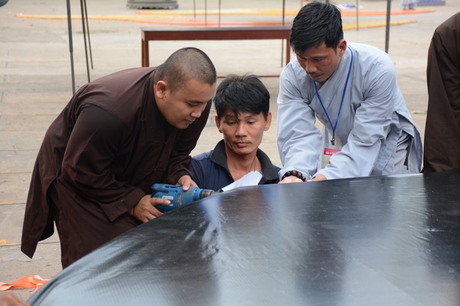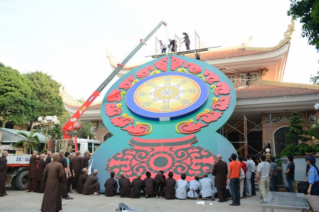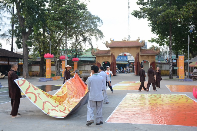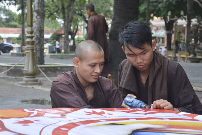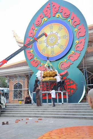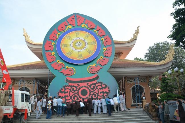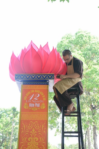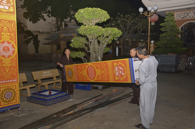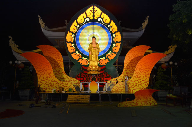 Monks and Buddhists at Hoang Phap Pagoda are hurriedly fulfilling the rest works of preparation for lantern ceremony of Amitabha Buddha Day, Nov 17, lunar calendar.