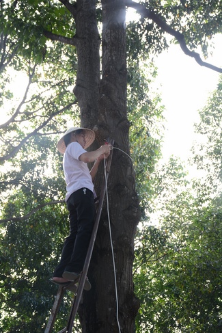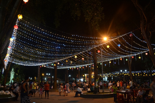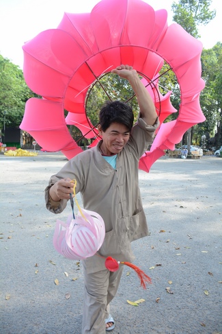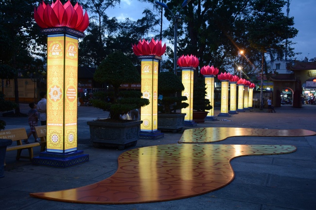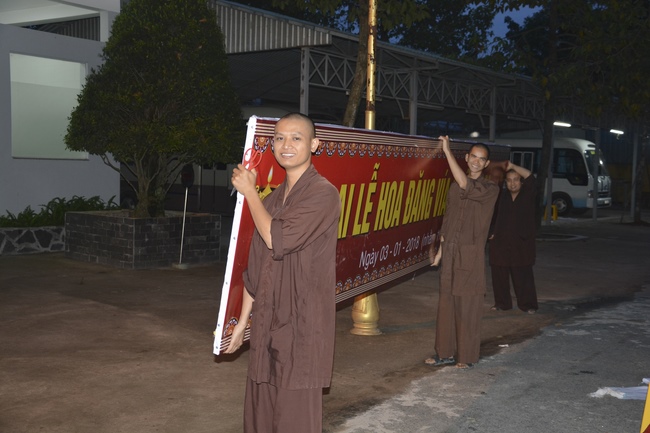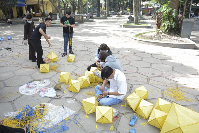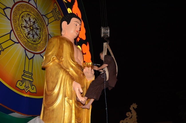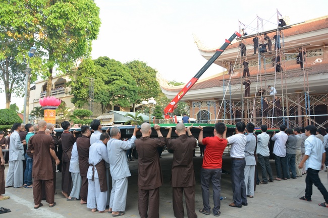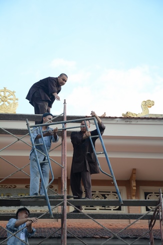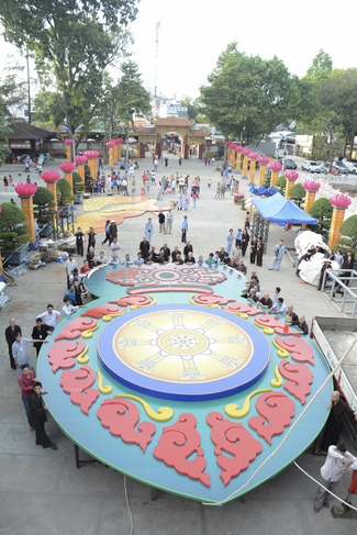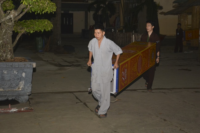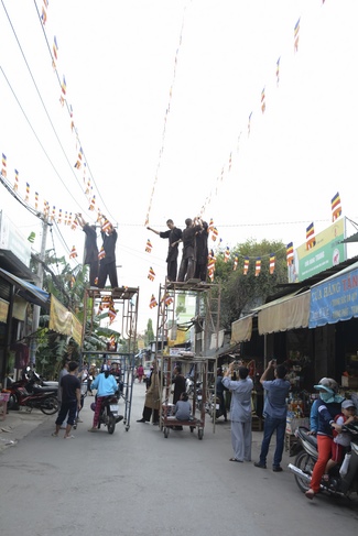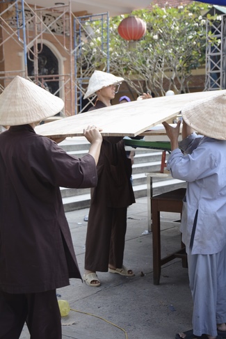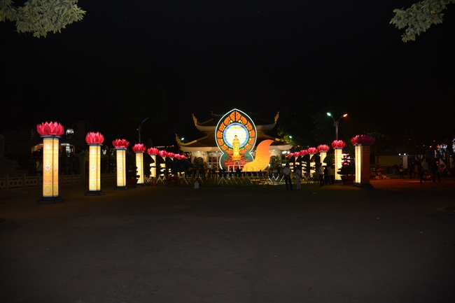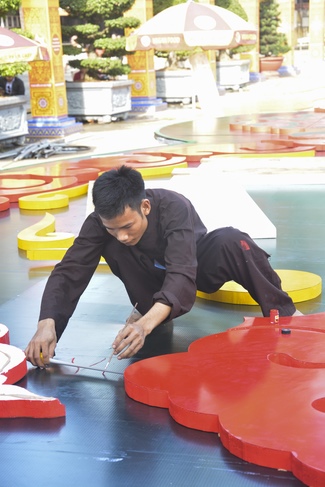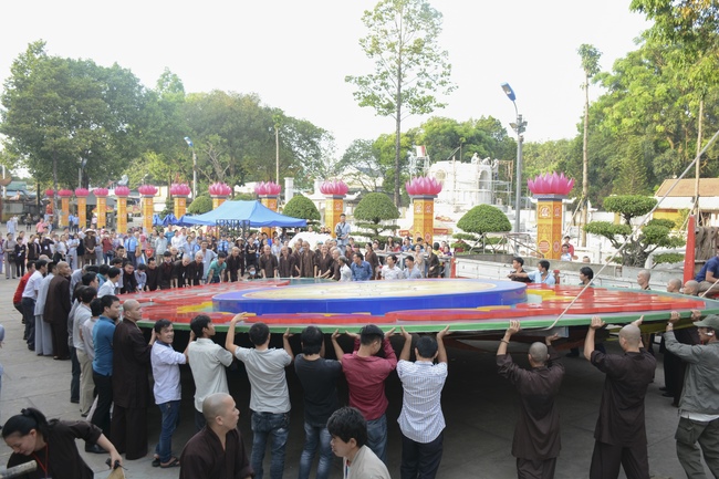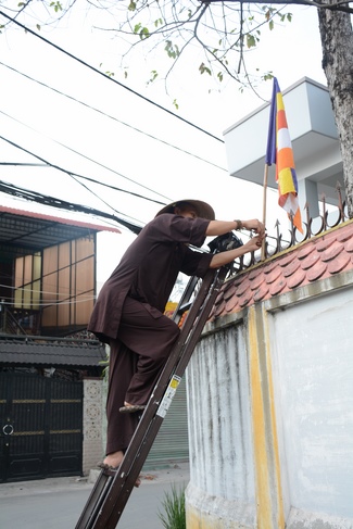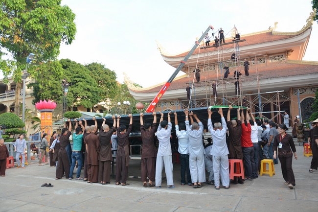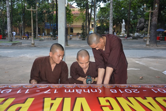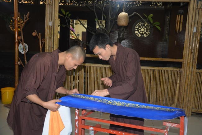 Monks and Buddhists at Hoang Phap Pagoda are hurriedly fulfilling the rest works of preparation for lantern ceremony of Amitabha Buddha Day, Nov 17, lunar calendar.