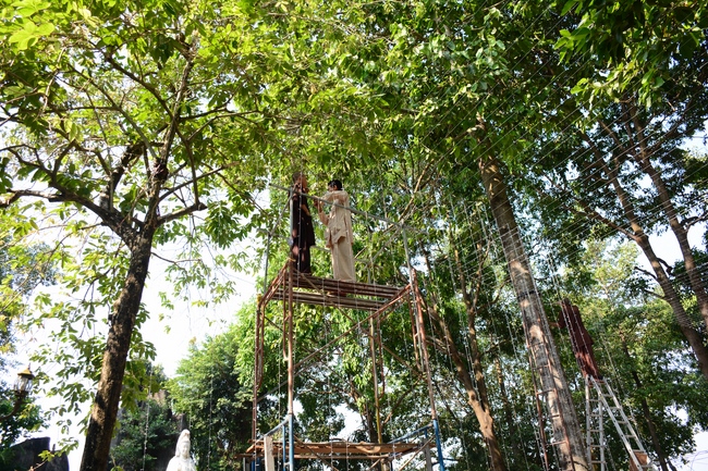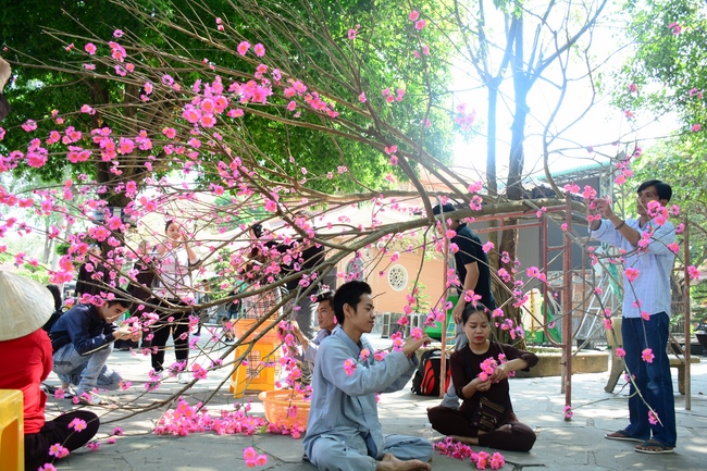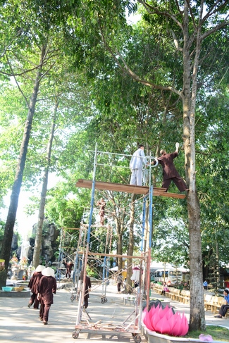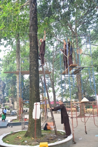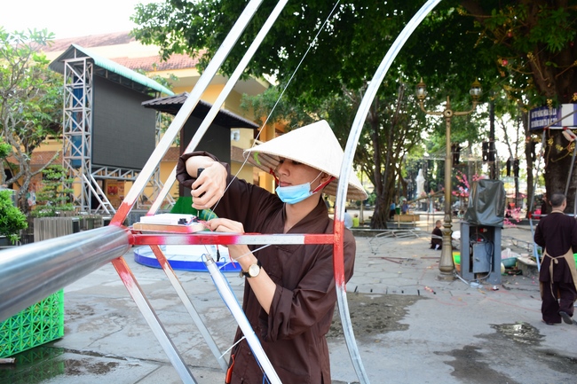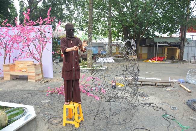 Để tô đẹp cho mùa xuân Mậu Tuất, ngay từ trung tuần tháng Chạp, chư Tăng và quý Phật tử chùa Hoằng Pháp đã tạo dựng những mô hình đặc sắc, sáng tạo nhằm mang thêm niềm vui và một không gian tràn ngập sắc xuân trong chốn thiền môn cho mọi người khi đến chốn già lam tham quan, lễ Phật những ngày đầu năm mới.