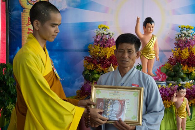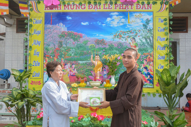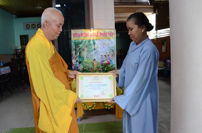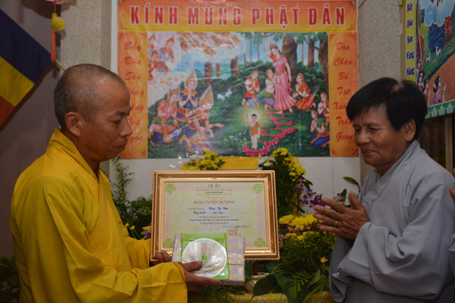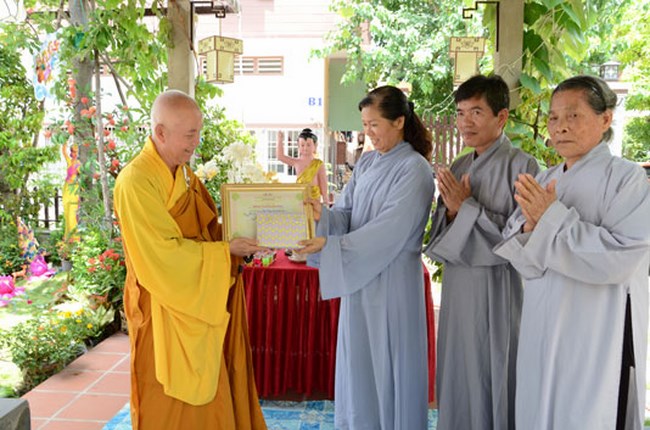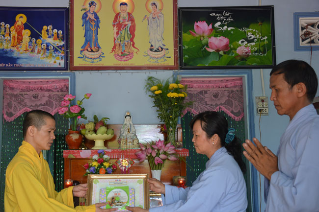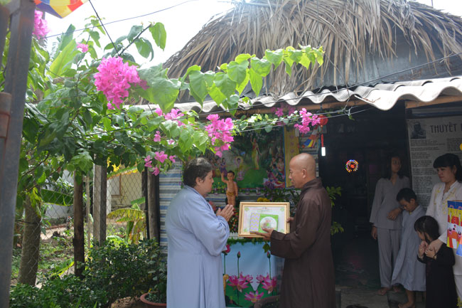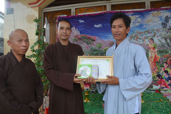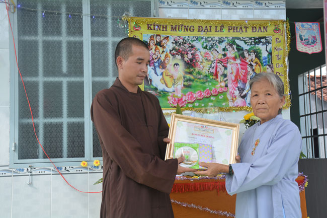 In harmony with the merry atmosphere of the Vesak day, the Shanghas of Hoang Phap Pagoda recently offered presents and merit certificate for Buddhists’s Rostrum and Lumbini Garden at Home in Ho Chi Minh city and some nearby provinces.