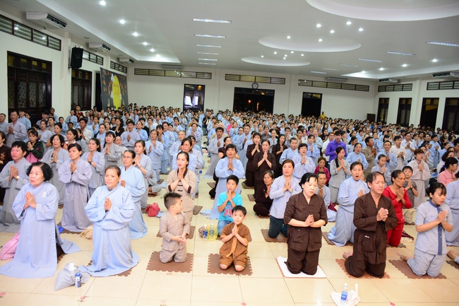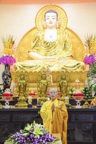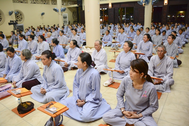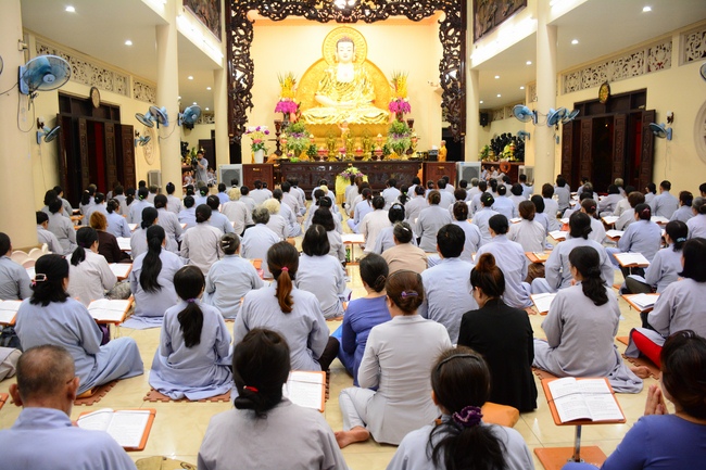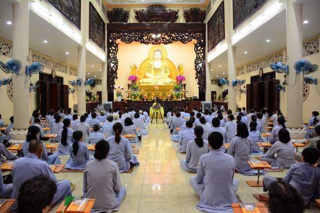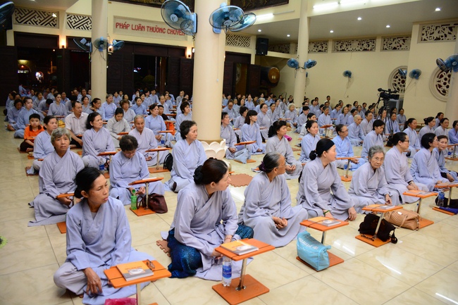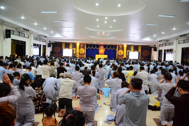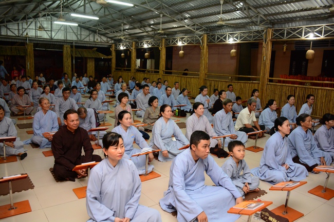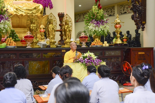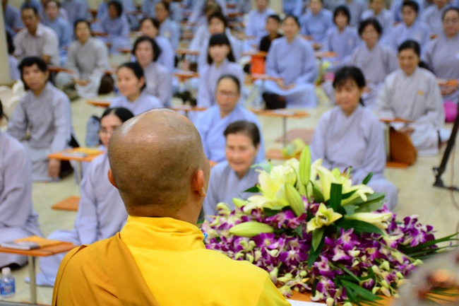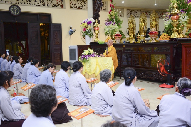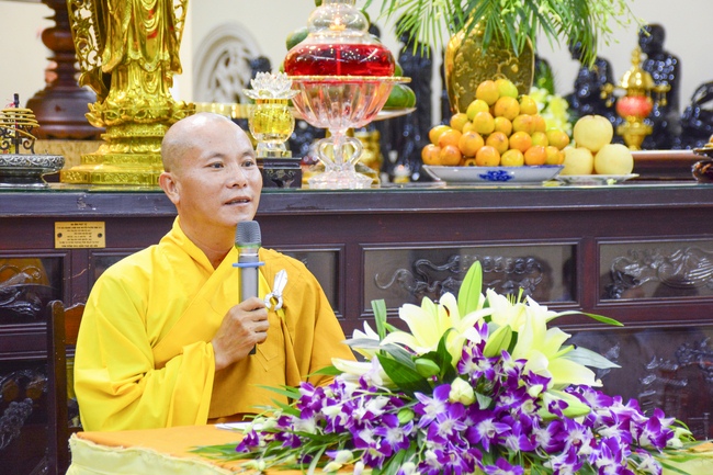 Before the penitent rite, it was the Dharma talk from Venerable Thich Tam Hung, Abbot of Quoc Thoi pagoda, Ben Tre province, on the topic: Right View for Practicing.
