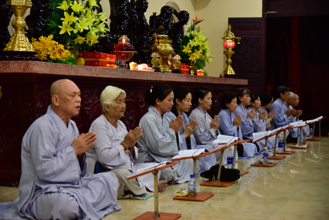 In the evening of Sep 19, 2017 (Jul 29/07 Dinh Dau), devout Buddhists from HCMC and other regions came to Hoang Phap Pagoda for regular repentant course.