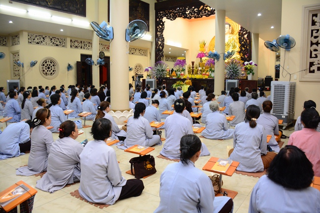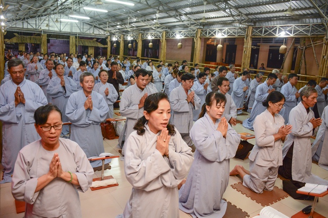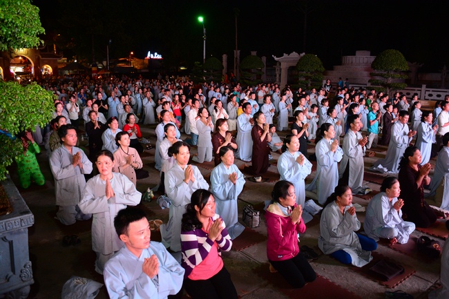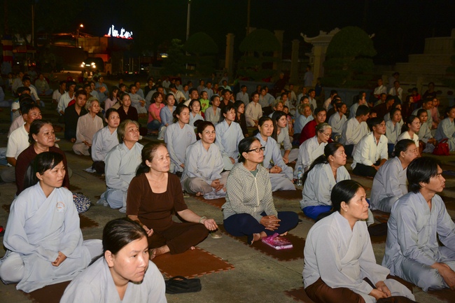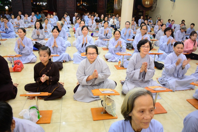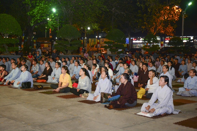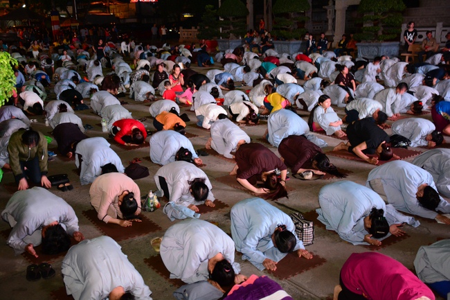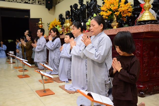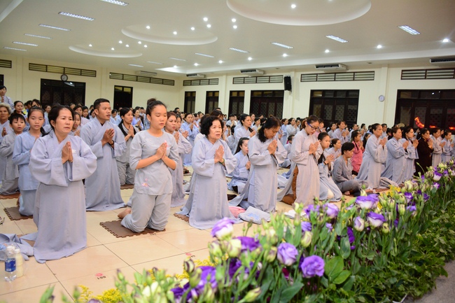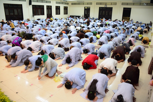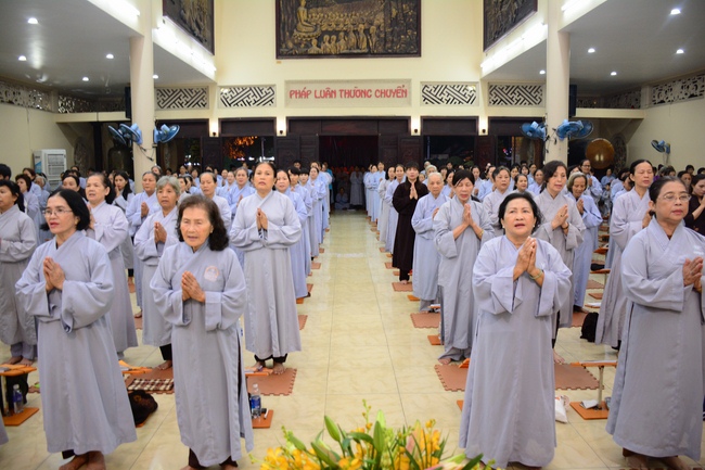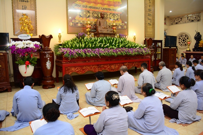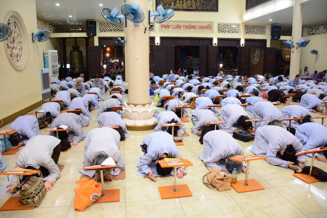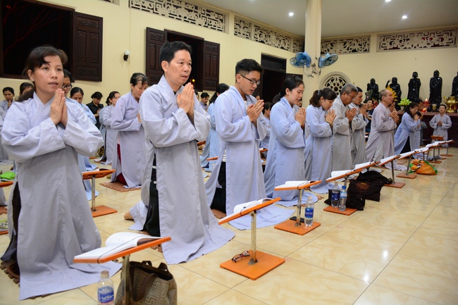 In the evening of Dec 01, 2017 (Oct 14, lunar calendar), devout Buddhists from HCMC and other regions came to Hoang Phap pagoda for regular repentant ceremony.