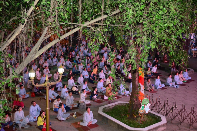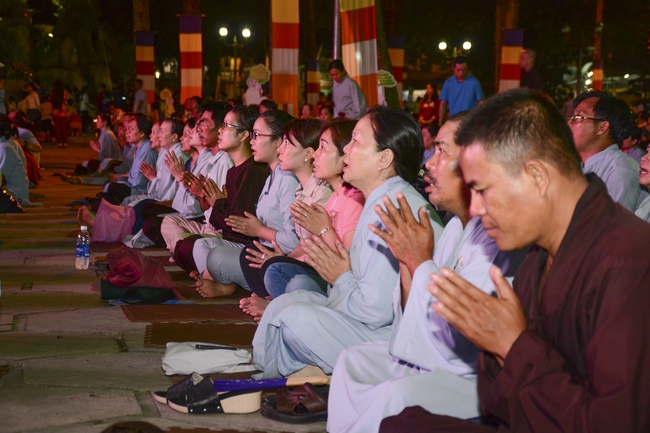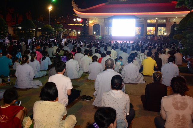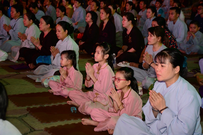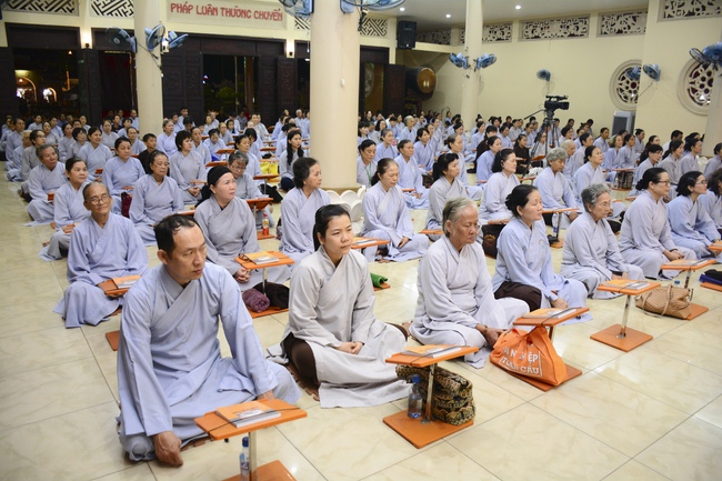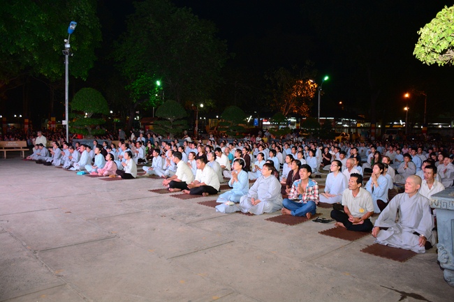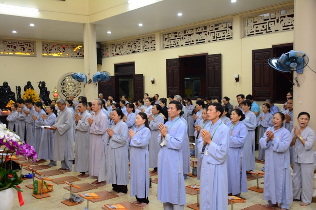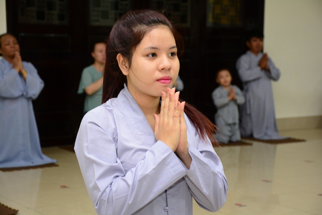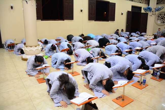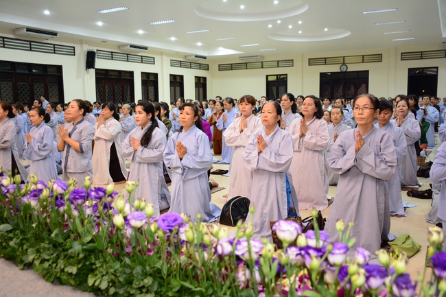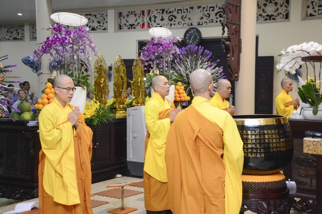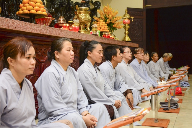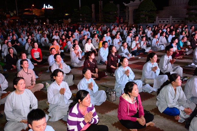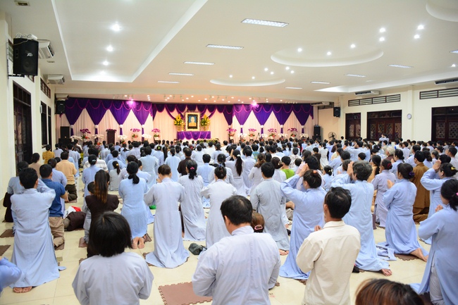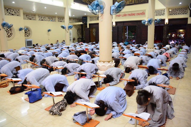 In the evening of Dec 01, 2017 (Oct 14, lunar calendar), devout Buddhists from HCMC and other regions came to Hoang Phap pagoda for regular repentant ceremony.