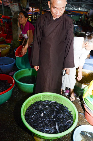 Before that, on the lunar Dec. 10th, in the way of his Buddhist\r\naffair, the Junior and Buddhists entered the Hoc Mon market to buy some kinds\r\nof fishes, eels, frogs, etc, then transported them to Sai Gon River to have a\r\nrelease.