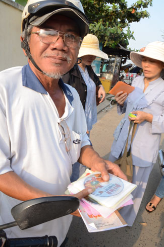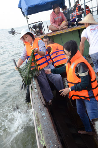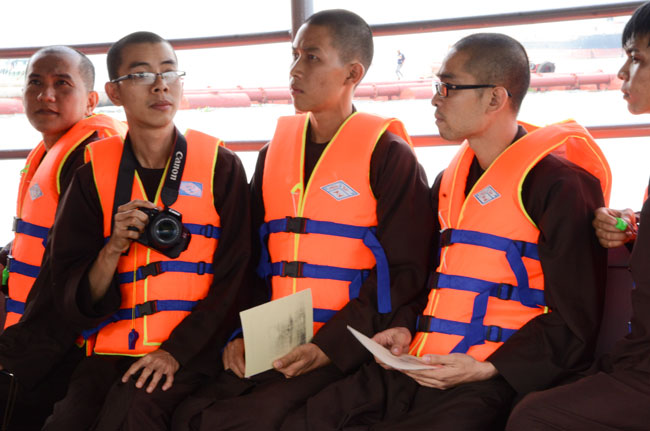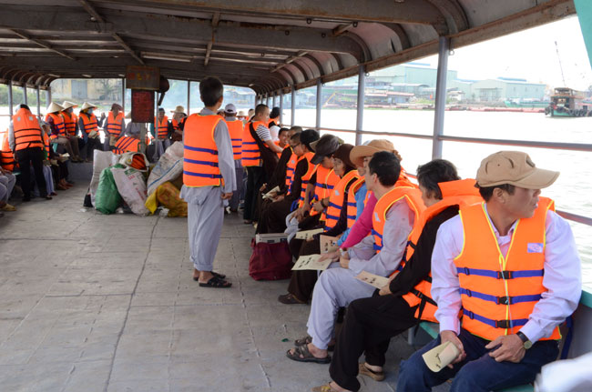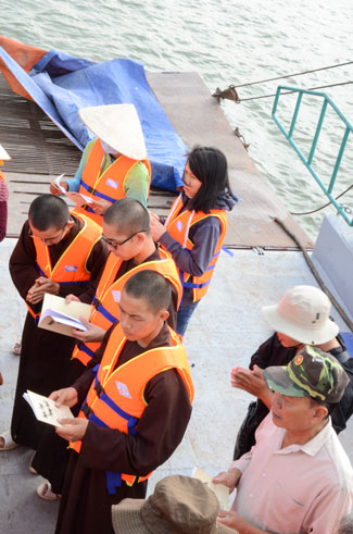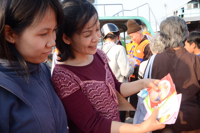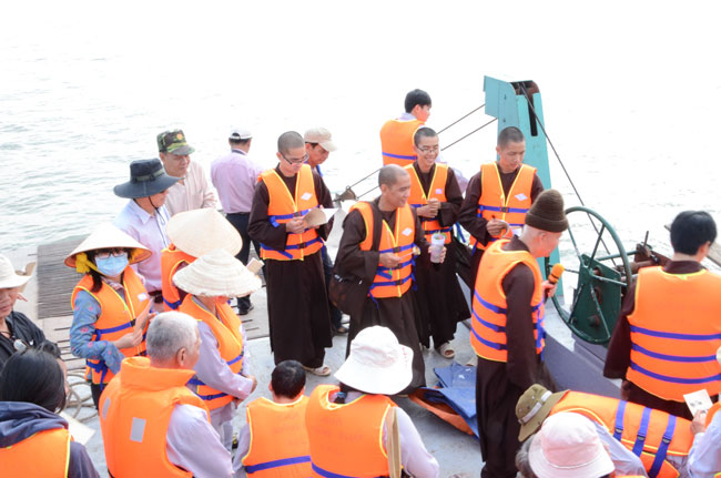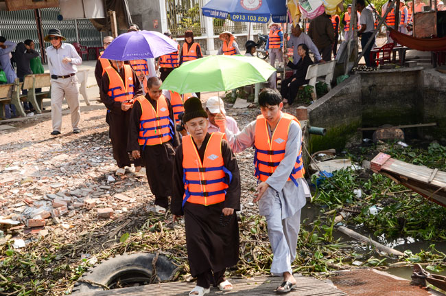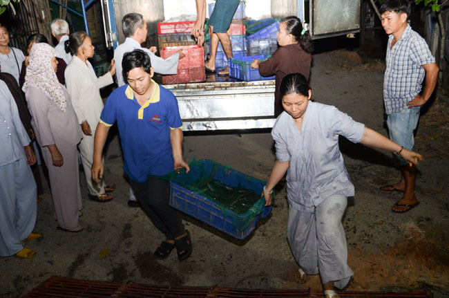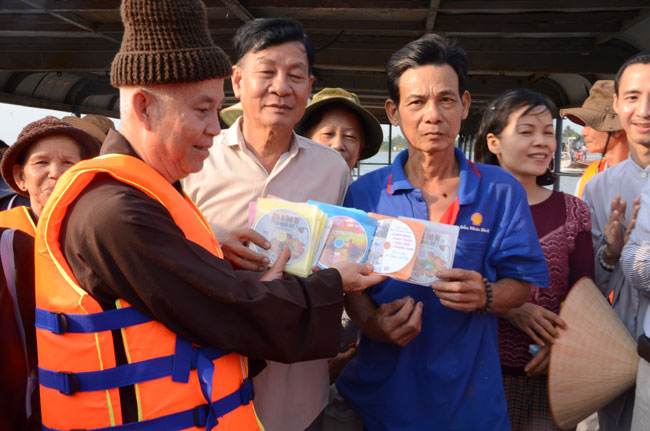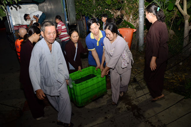 On occasion of the Buddha ‘s attaining enlightenment – lunar Dec. 8th, which remind the Buddha’s children of having to respect the life of all sentient creatures together with the love of human. By instruction of Abbot Thich Chan Tinh, Junior Tich Tam Hue and Buddhists of Hoang Phap Pagoda organized a trip of animal releasing on Hau River of Jan. 31st, 2015, (lunar Dec. 12th , Horse year),[ which included free examining patients, free offering medicine and releasing living creatures in Dong Thap Province.