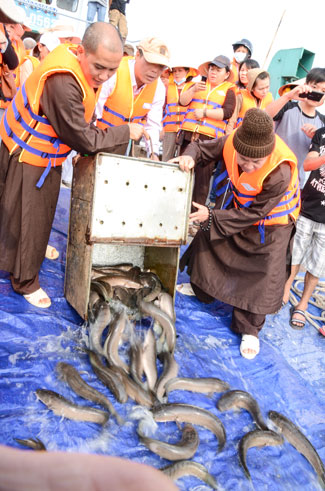 This time, Junior Thich Phap Dang – Abbot of Hue Vien pagoda\r\nalso attended by chance of his preaching trip in the Western provinces. On the\r\nimmense current of river, each group of mullet, catfish was released in the\r\nfresh water were released the nature.