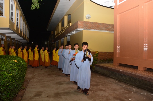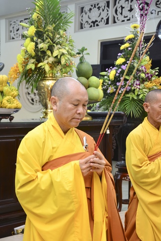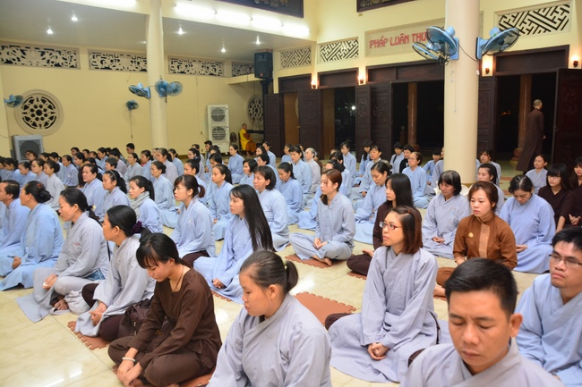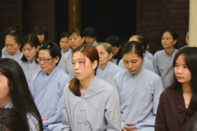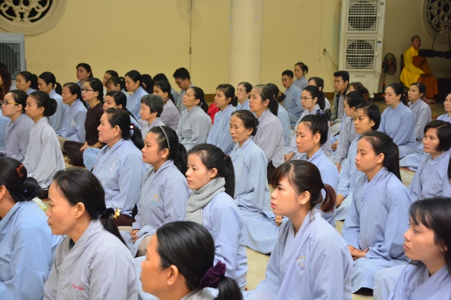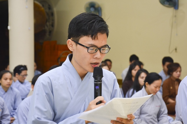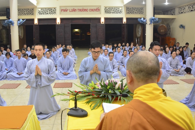 At the ceremony, after the sangha offers incense to Triratna, representative of the aspirants humbly asks for the ordainment rite. In response to the request, abbot Venerable Thich Chan Tinh gives them the lecture regarding the life of Prince Siddhartha who renounces his royal life to become recluse Gautama overcoming all the obstacles to reach the ultimate Attainment. From this meaning, the aspirants should acknowledge and diligently practice the Threefold Training (sikkhÄ) in which precept is the foremost. The abbot Venerable emphasizes the importance and benefits of precepts and morality in the life of clergymen in the Path to the Enlightenment:†Morality generates concentration, concentration generates wisdomâ€. The Venerable also reminds the quarter-key grace that Buddha teaches us, especially the Buddha’s grace and parents’ merit. Thanks to parents’ merit that we can get the current situation. Thanks to Buddha teachings that we can see the right Path to follow and practice to liberation.