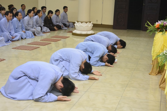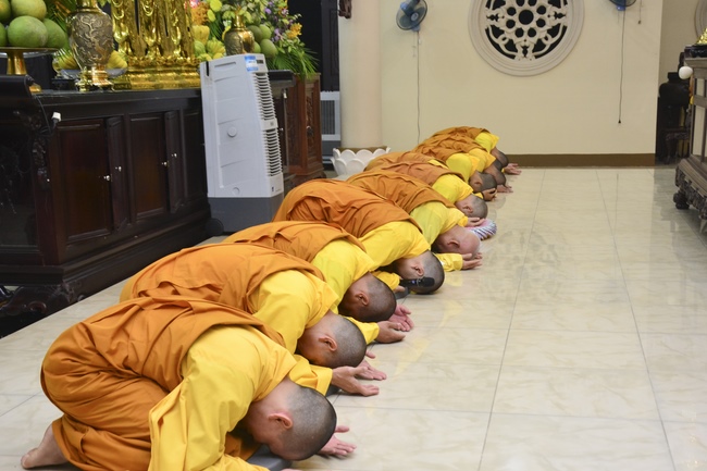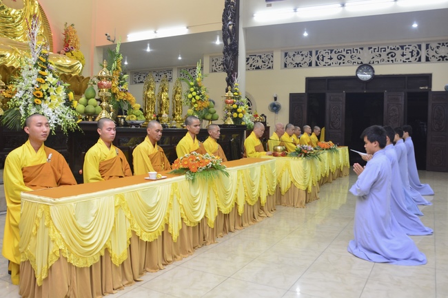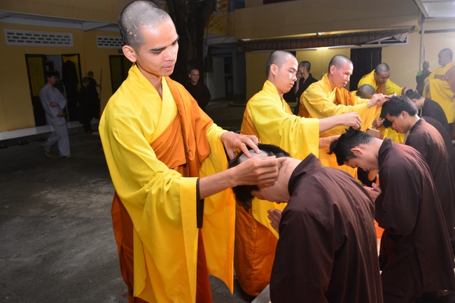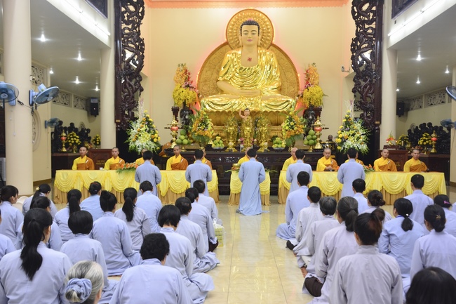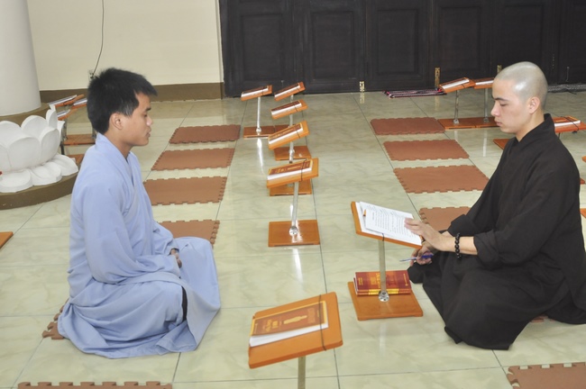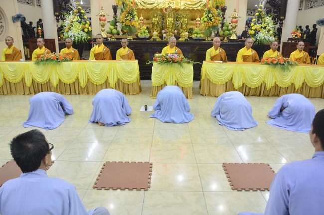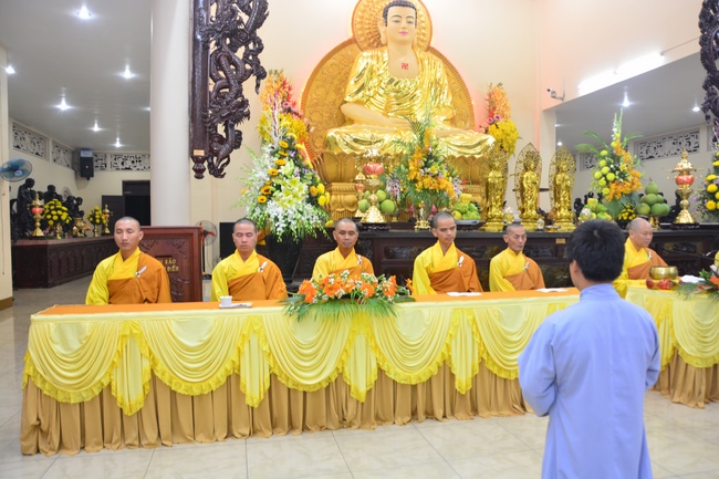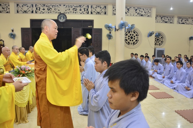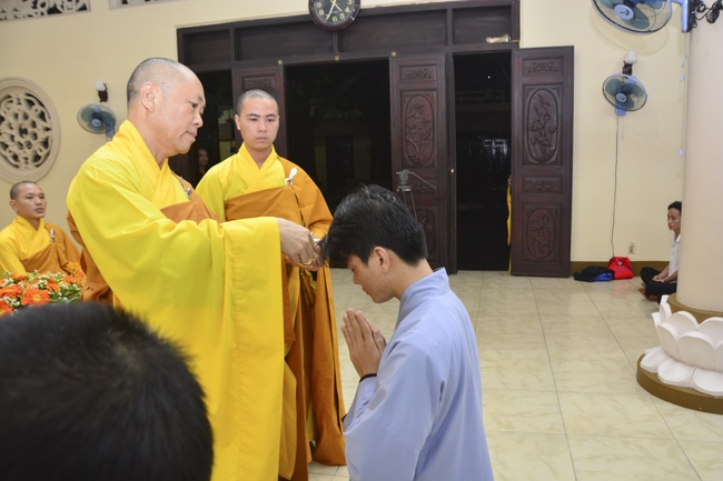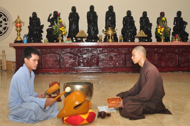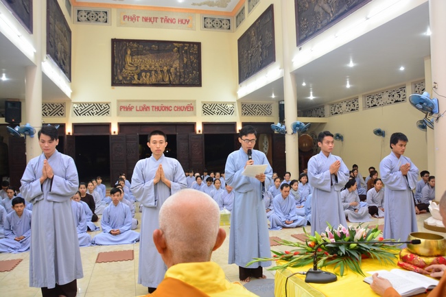 To be ordained at the pagoda, it takes the practitioner at least 6 months of probation without any violation of 32 precepts for clergyman. Besides, the practitioner should know by heart the contents of prayers in the day for morning course, afternoon course, at noon course, before meal praying and mastering the usage of worship accessories. To be eligible for the ceremony, the practitioner has to pass the rehearsals of sutras and moral test.