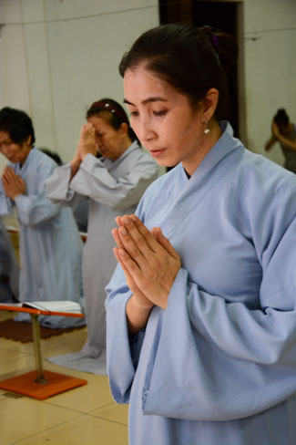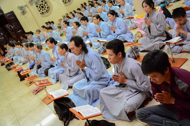 After the lecture, the Buddhists began reciting\r\nBuddha’s name for repentance and listened to Five Precept for\r\nlaypeople.