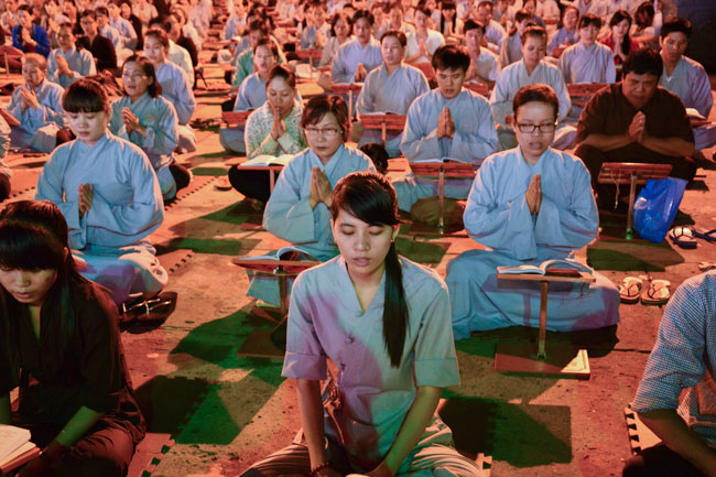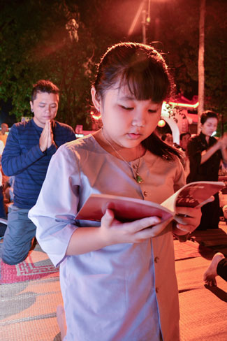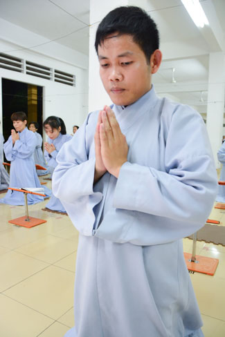 After the speech, Buddhists took a deep bow, recited\r\nBuddha’s names and listen to Five Precepts for lay people.