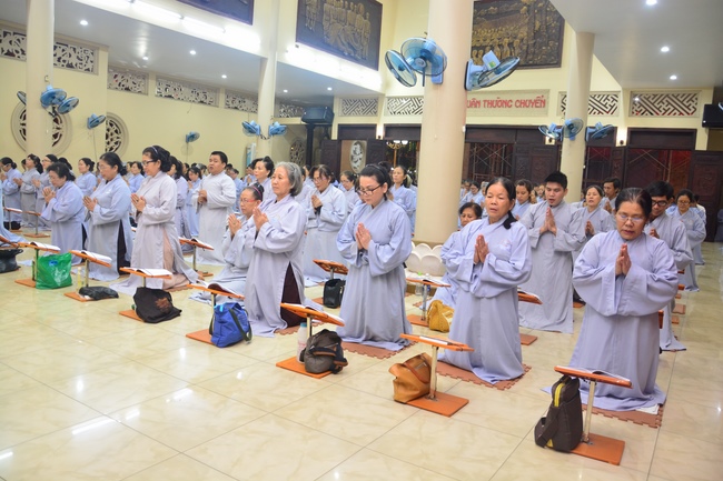 Tối ngày 30/01/2018 (nhằm 14/12 Đinh Dậu), quý thiện nam tín nữ trong và ngoài TP.HCM đã trở về chùa Hoằng Pháp tham dự khóa lễ sám hối định kỳ hằng tháng.