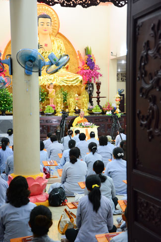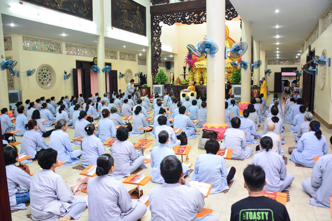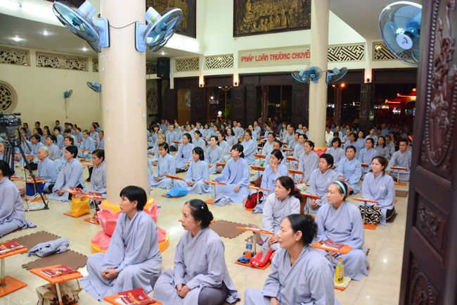 In the evening of March 8th, 2016 (Lunar Jan. 30th, Monkey year), the honoured buddhists inside and outside Ho Chi MInh City returned to the Hoang Phap Buddhist temple to participate in monthly periodic repentant ceremony.