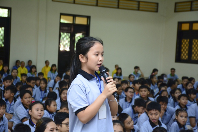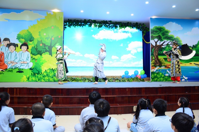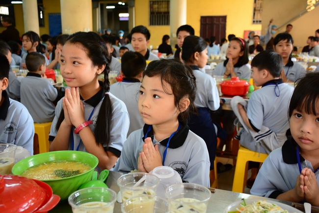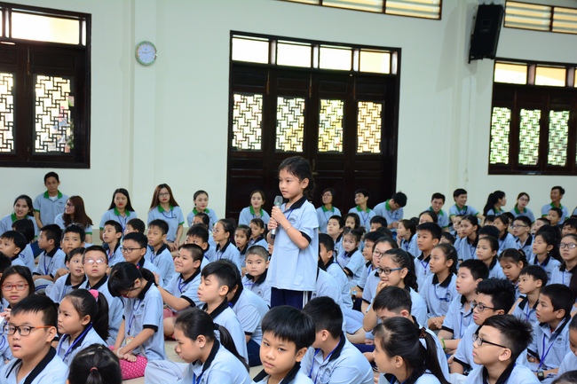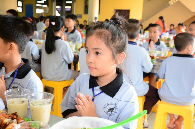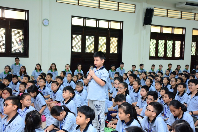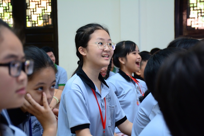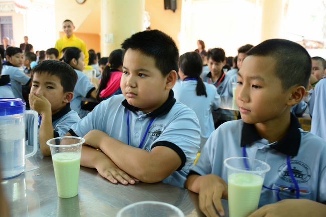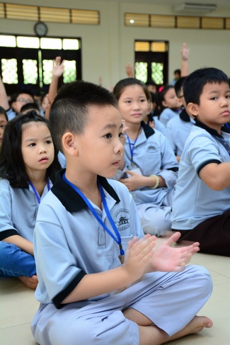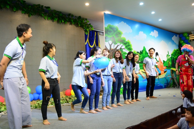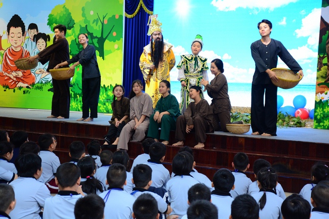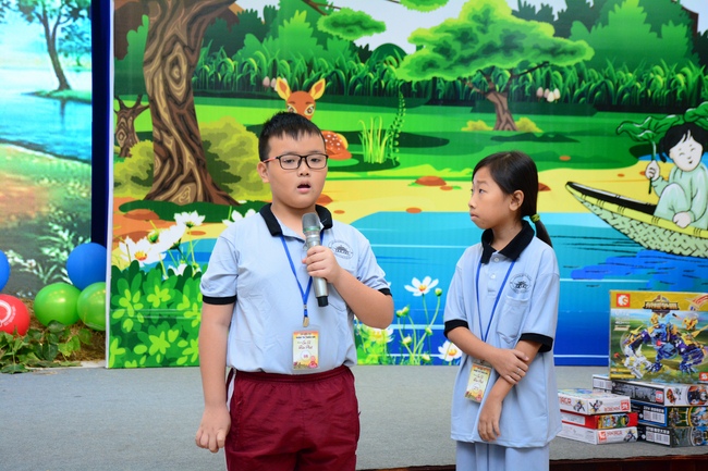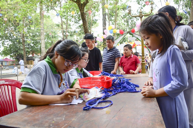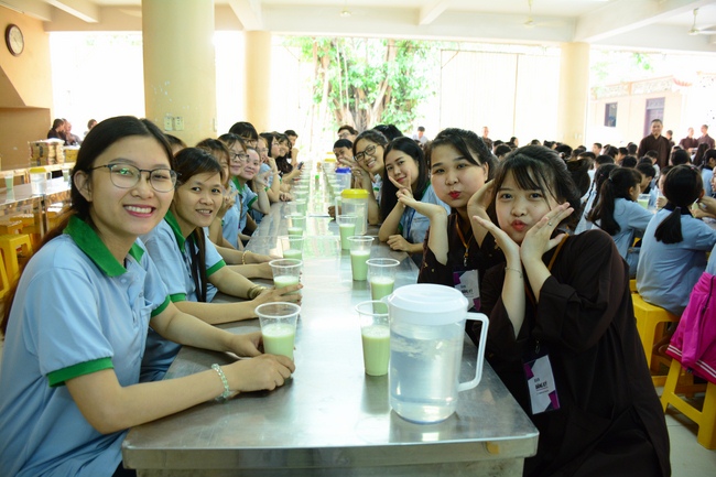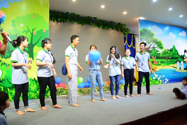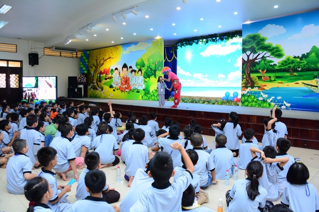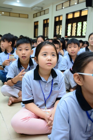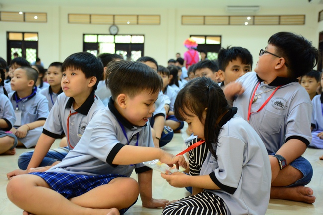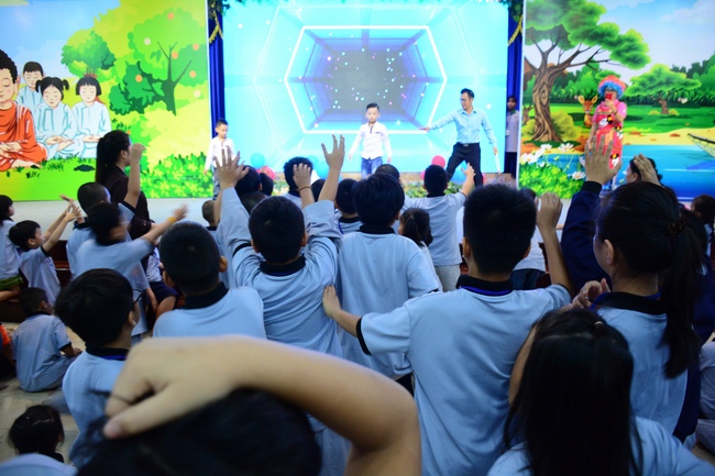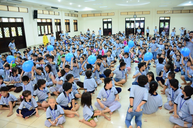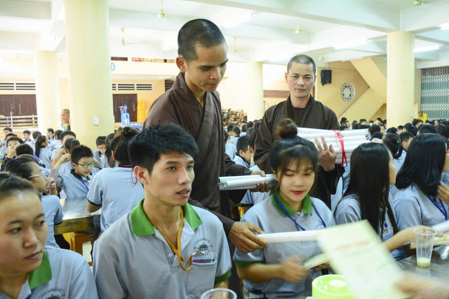 After registration in the morning, children gathered at the main hall to listen to a short Dharma talk from Senior Venerable Thich Chan Tinh, Head of Organizing Committee. He skillfully taught kids how to be mindful with body, speech, and mind, perform Buddhism etiquette when walking, standing, lying and sitting, pressing palm together, bowing, kowtowing in front of Buddha statue and clergy people via the poem: