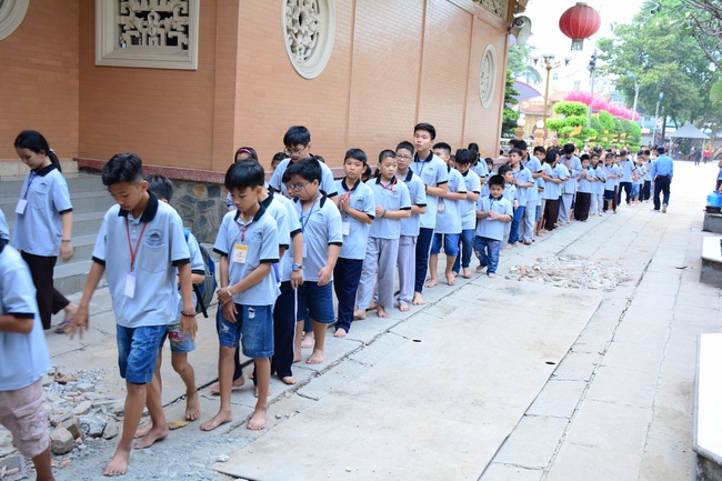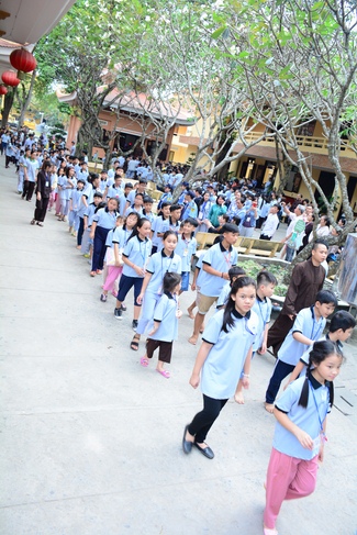 In the afternoon, monks taught children meditation and the verse “Nhá»› Æ nâ€. After everyone practiced walking meditation in pagoda yard, the retreat closed in the joys of all.