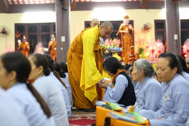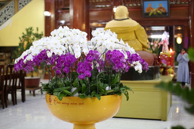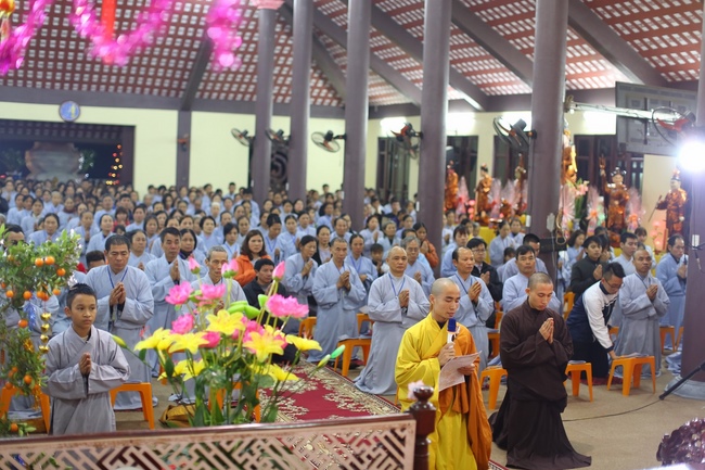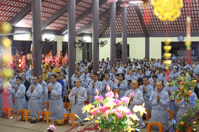 After that, the Buddhists had taken part in the chanting with the desire to shake off the misery from the past year, refresh body and mind to welcome a new year of purity and peace. After the chanting, Master Thich Tam Hao - Hoa Phuc Temple Sangha on behalf of the Buddhists gave New Year wishes to Ven. Thich Chan Tinh - Abbot of Hoang Phap Pagoda (Ho Chi Minh City) and Ven. Thich Tam Hoa - Abbot of Hoa Phuc Pagoda.