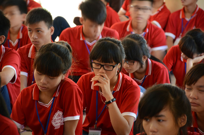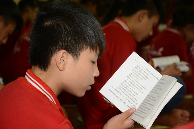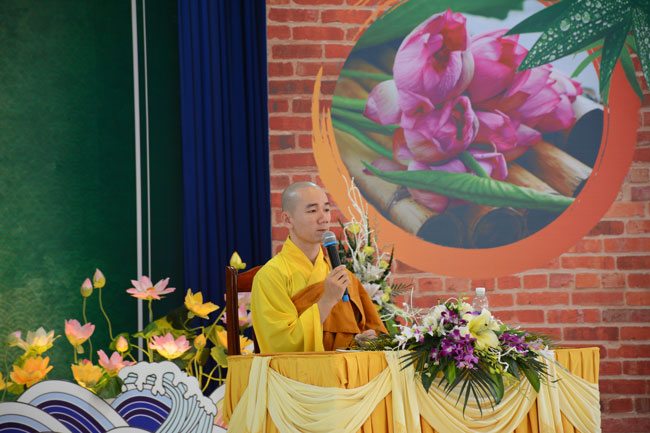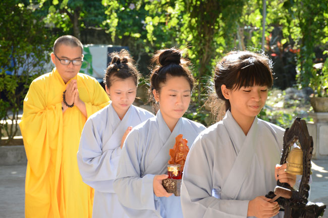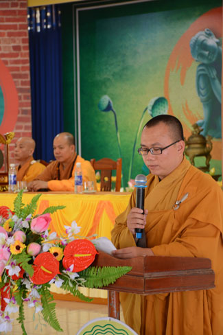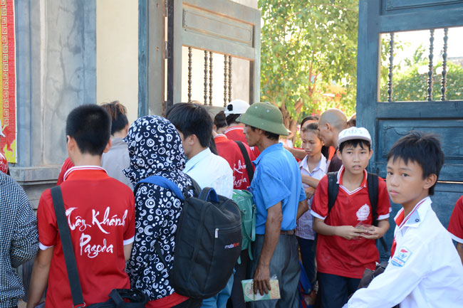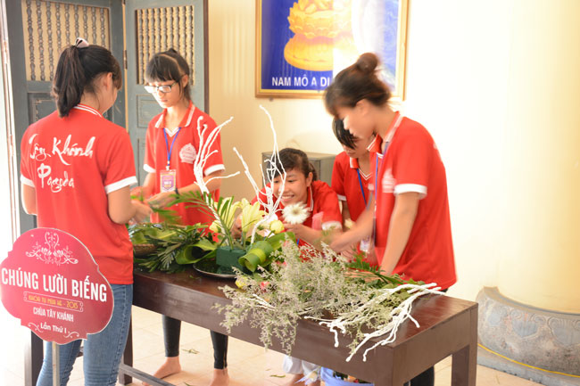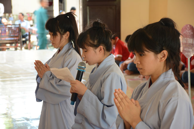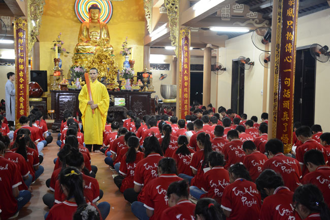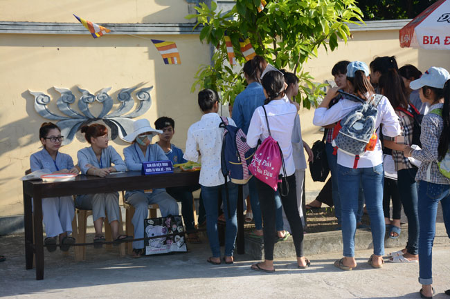 After finishing many register procedures, they sent their phones, money and properties outside and officially entered thecultivation with beginning ceremony happening in the afternoon at the same day. To prove this ceremony, Senior Venerable Thich Thanh Dinh, Permanent deputy chief Vietnam Buddhist Sangha of Thai Binh province, Abbot of Tu Xuyen pagoda, Thai Binh city; Junior Venerable Thich Thanh Vuong, Board of director department manager Vietnam Buddhist Sangha ofKien Xuong ward, Abbot of Quan Am pagoda, Thanh Ne town, Thai Binh province; Junior Venerable Thich Thanh Khuyen, Board of directors deputy chief Vietnam Buddhist SanghaofKien Xuong ward, Abbot of Thanh Nhan pagoda, Nam Binh commune, Kien Xuong ward, Thai Binh province presented. Moreover, Monks of Hoang Phap pagoda in HCM city attended, assistedand supportedthis ceremony.
