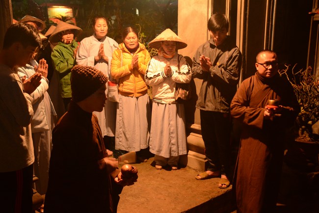 Native Buddhists also wrapped square sticky rice cakes from glutinous rice, which had been just harvested, with the core of green beans to create a special Tet flavour to make offerings to Buddhas and Bodhisattvas. All preparatory work to welcome Monkey Year such as designing models of peach trees, apricot trees, the ancient scholar, Maitreya pedestal, the wrapping of Chung cake, all of which were almost done. All people hoped to bring happiness, novelty to Buddhists, guests doing sightseeing and praying Buddha on the occasion of this Monkey Year.