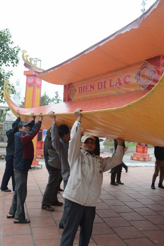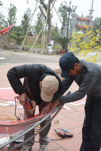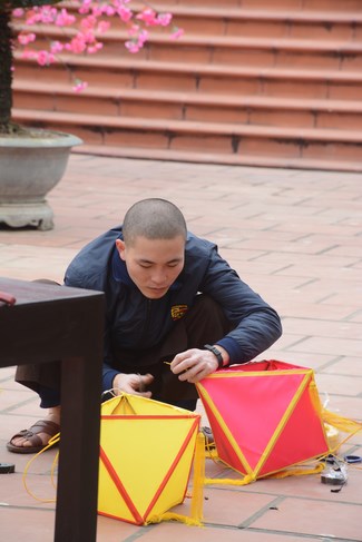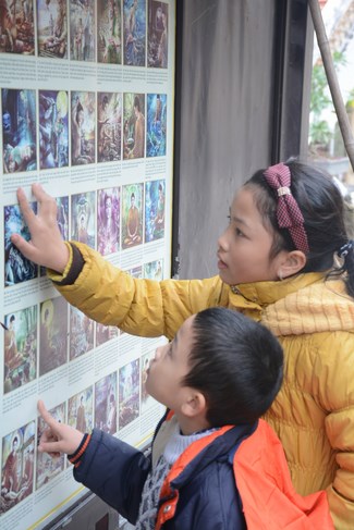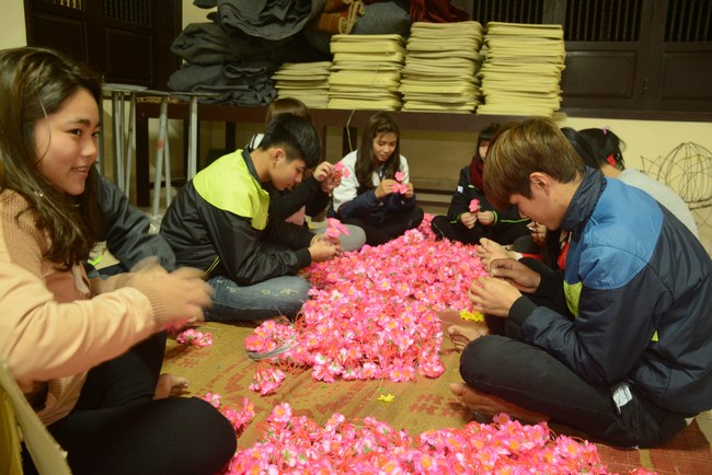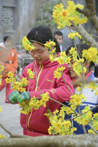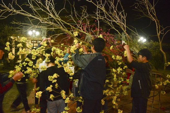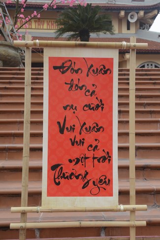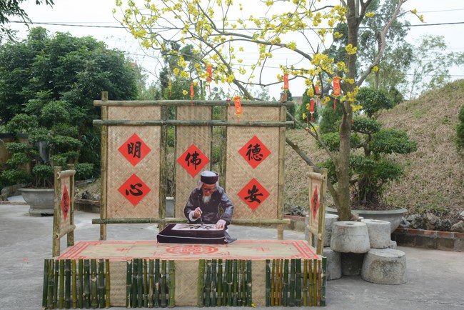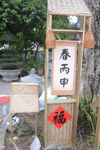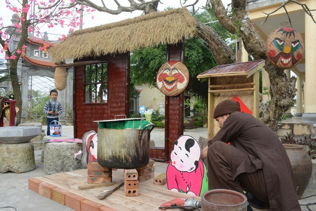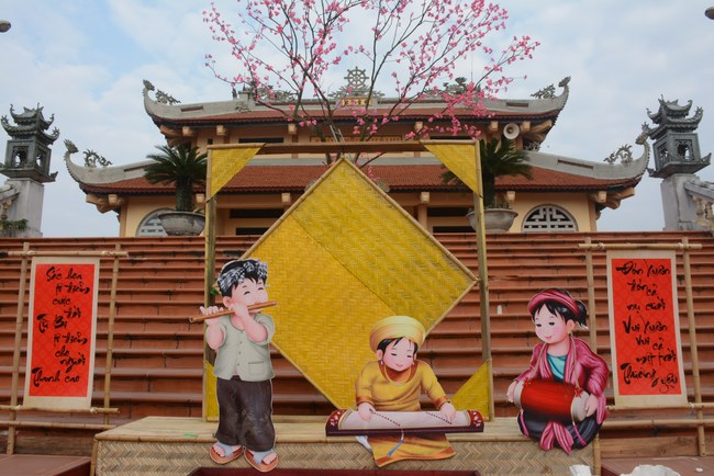 All the sceneries and models were solemnly arranged, showing cultural identity of Vietnam people. Among them, some models showed tradition of nation such as peach tree, spring atmosphere of the north, with apricot tree, atmosphere of the south. The image of the roofs of northern delta was close to people here. Near Avalokitesvara pedestal was the model of scholar writing calligraphy as Spring came.