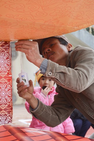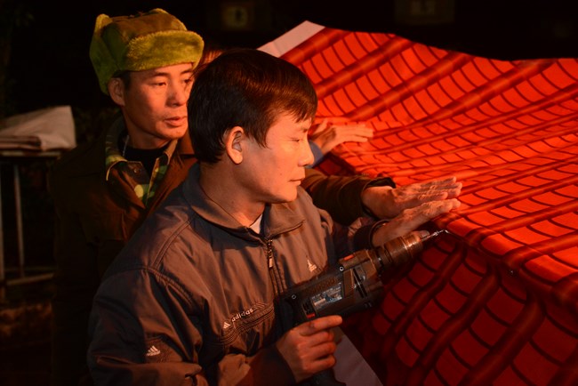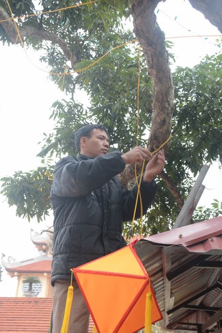 In the middle of the pagoda yard, the model of Maitreya pedestal was placed suitably with the pagoda view, making Tet atmosphere of countryside pagoda more unique. Although being very busy with decoration work for Tet, monks and villagers took advantage of spare time to perform releasing living creatures’ ceremony at the river on the side of the pagoda.