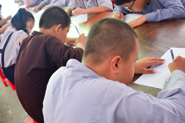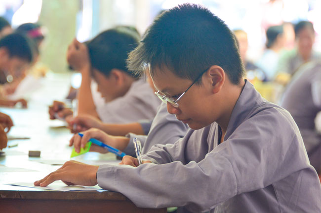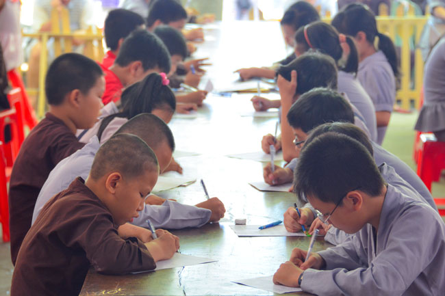 As other reports, after two rounds, the final round remained 65 children in three groups. In this contest, after the tests, they will be asked a question and answer question revolving around the theme: the Buddha's life, causality and life & career of the Ngo Chan Tu Monk which were for championeers.