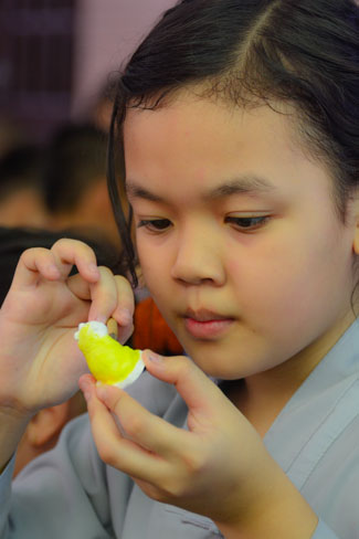 Each child received a Dharma gift which includes: a comic book od Causation, Our sun and Avarokitesvara Boddhisattva story. The main prize will be awarded on the day of death anniversary (Lunar Oct.16th).