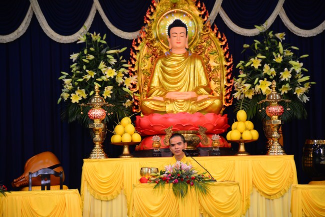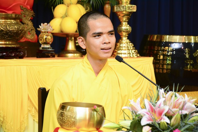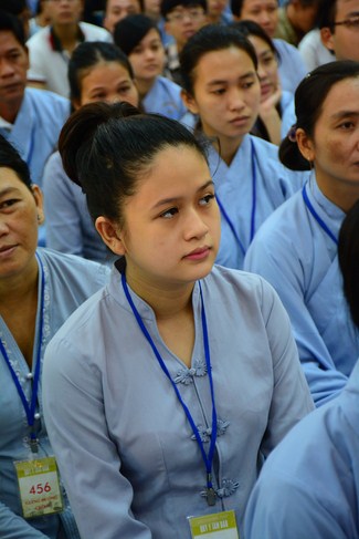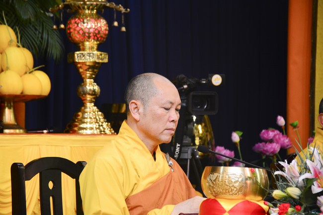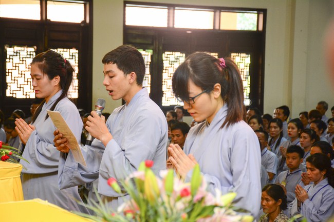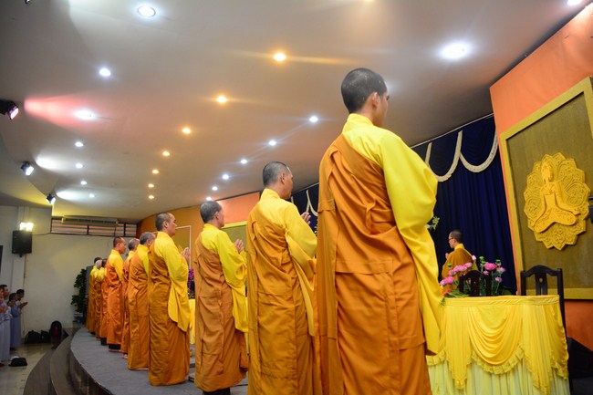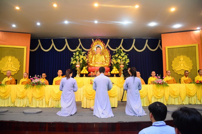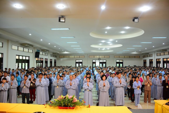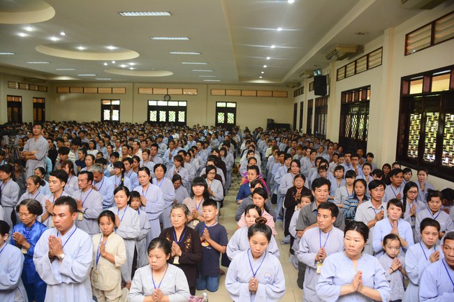 In the afternoon, Senior Venerable Thich Chan Tinh, Hoang Phap Abbot and monks officially lighted up and passed the Triratna, Five Precepts in very solemn and peaceful ashram’s atmosphere. Buddhists respectfully received them devotedly. After burning incense to Buddha, the Venerable conducted the penance ceremonial, offered Triratna and Five Precepts. In the ceremony, th4e Venerable gave compliments to all studious and cultivated Buddhist’s spirit. He also encouraged to new Buddhists.