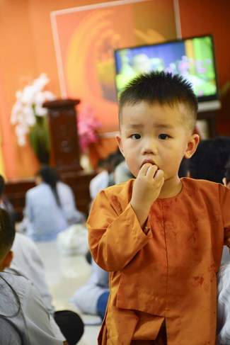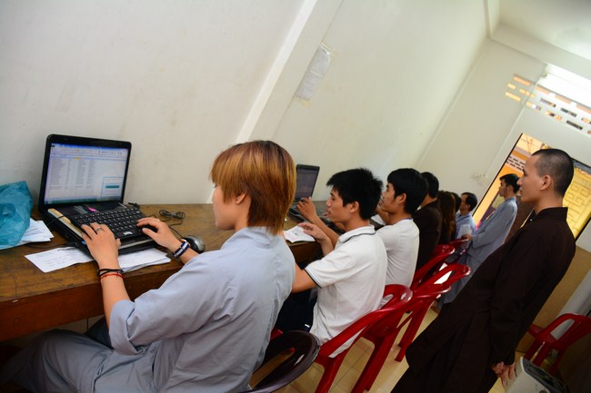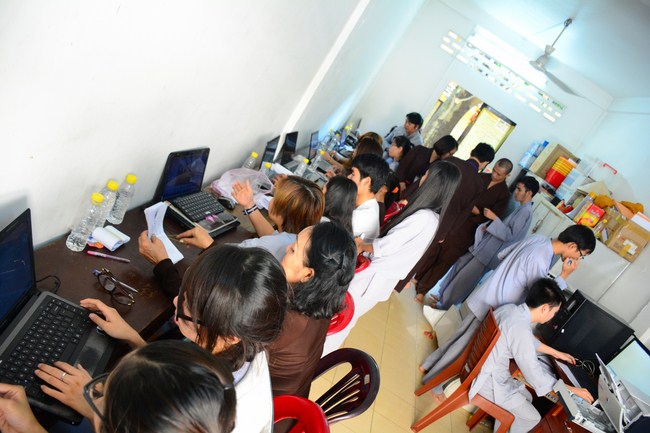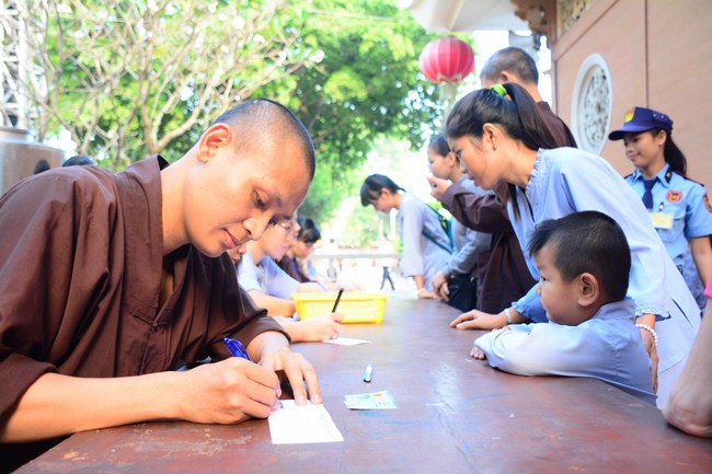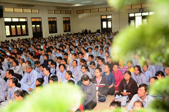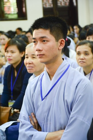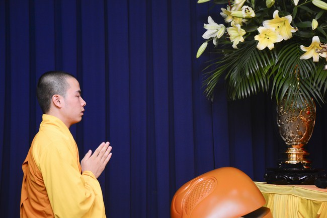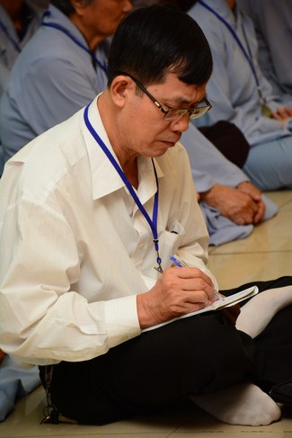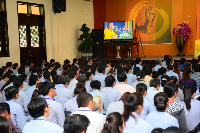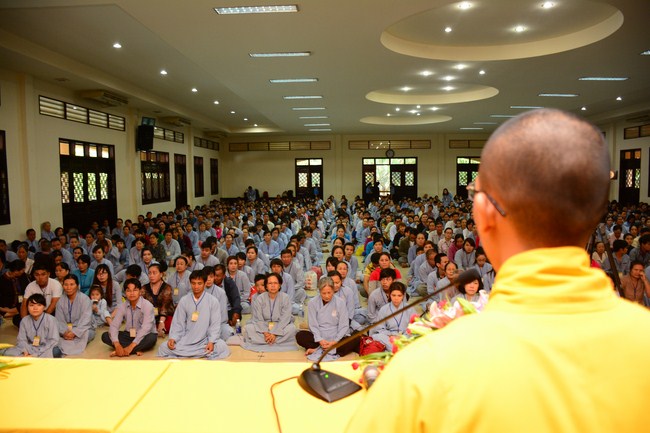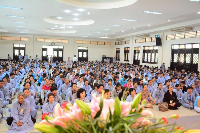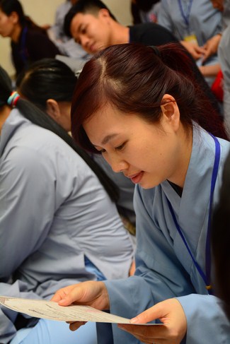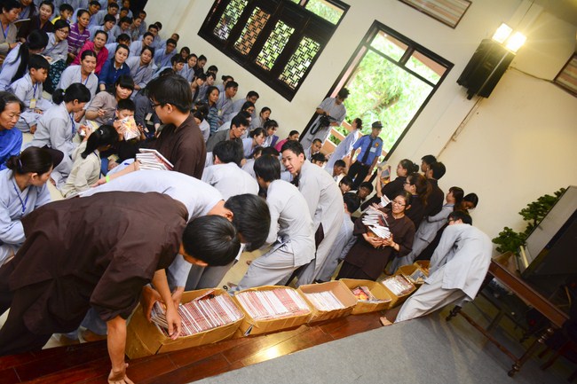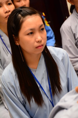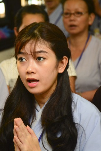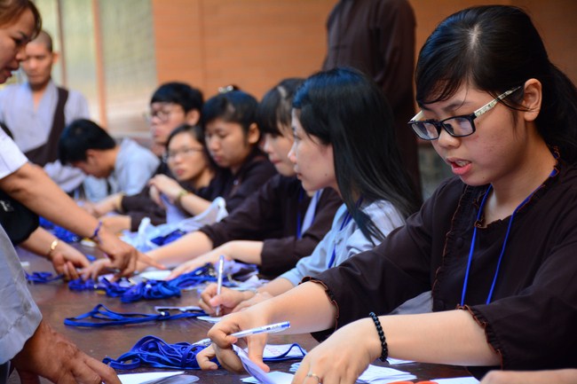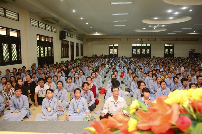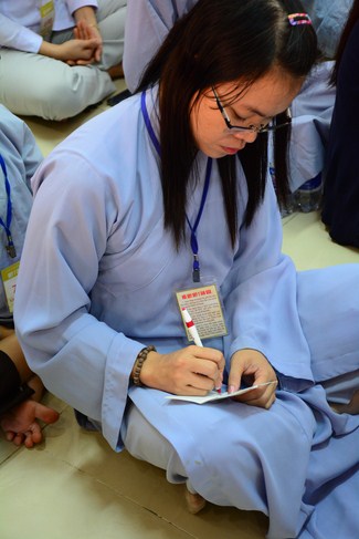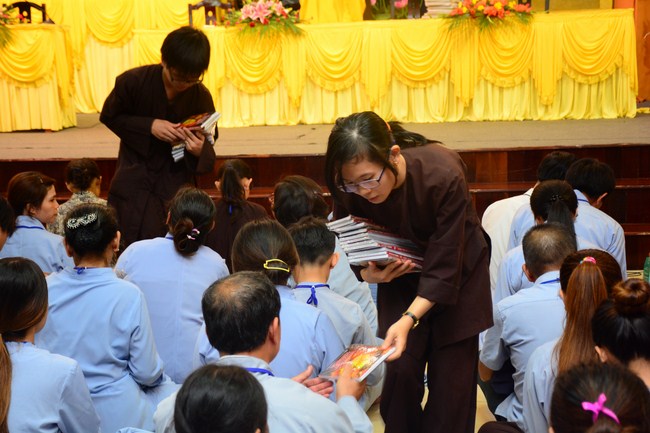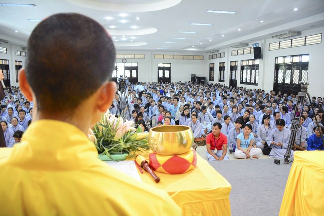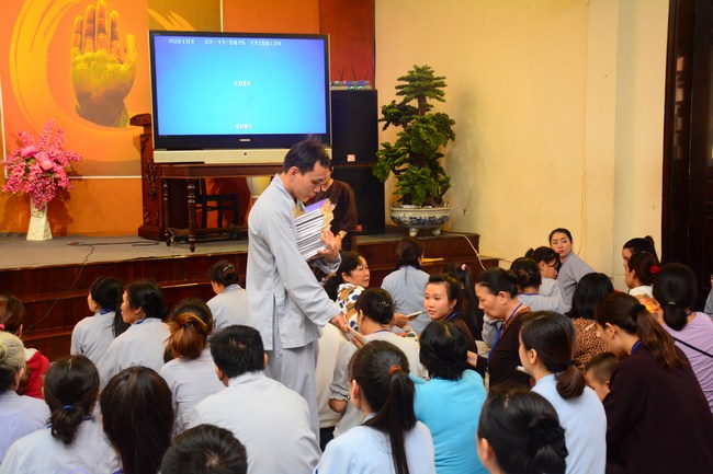 After having breakfast in the morning, all good men and believing women mustered in lecture halls to listen to Senior Venerable Thich Tam Trong’s essential dharma talk about Triratna Refuge, the meaning of Triratna and Five Precepts, concepts of penance, religious name, upasaka, upasikas, etc. In addition, venerable also gave instruction to some necessary rituals for Buddhists when they go to pagoda such as palms holding, saluting, kowtowing, and so on.