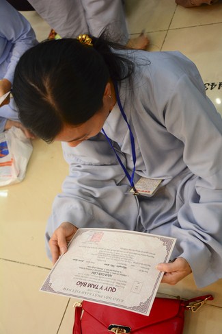 The ceremony was ended in everyone gladness. On this occasion, they were presented dharma gift from the organizers including A Brief Story of Shakyamuni book, Refuge Triratna Ceremony DVD, Buddhist’s Imposingness and Abbot messages.