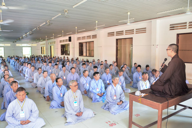 In the evening of the same day, Senior Ven. Thich Chan Tinh\r\n– Hoang Phap Pagoda’s abbot, head of retreat organization visited the hall and\r\nshared the regulations to all Buddhists.