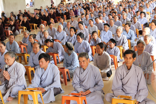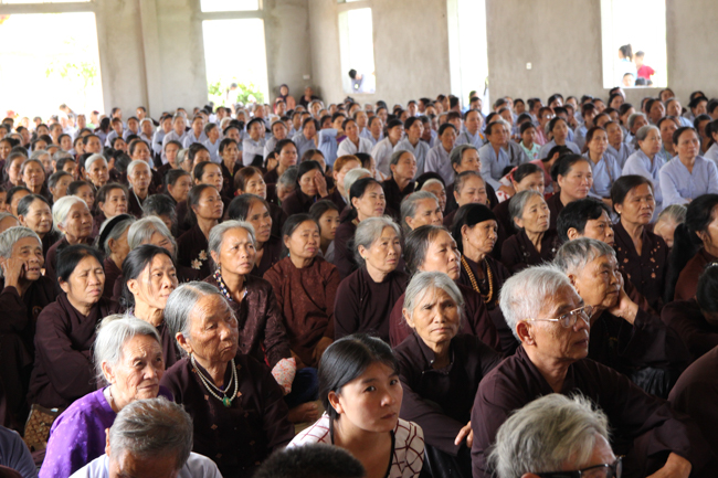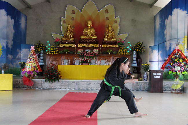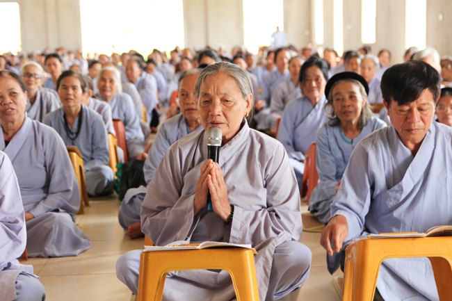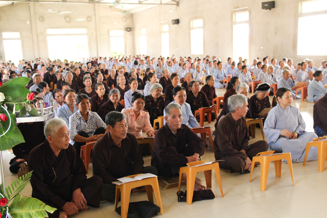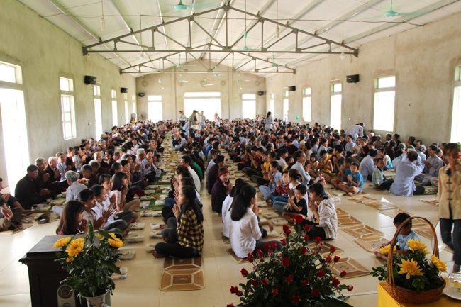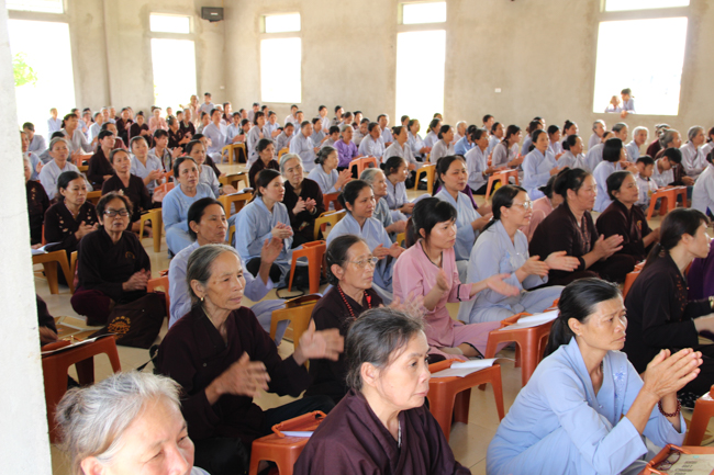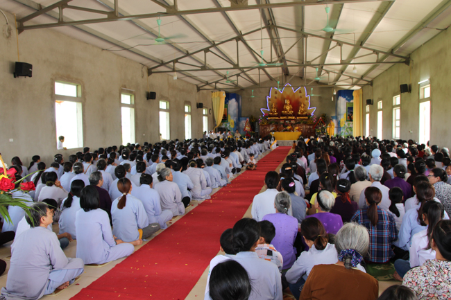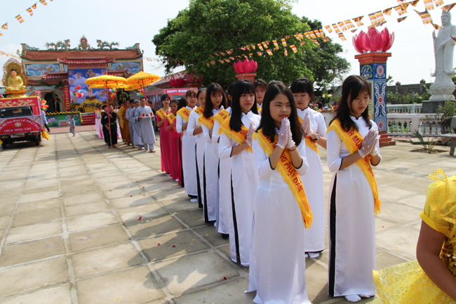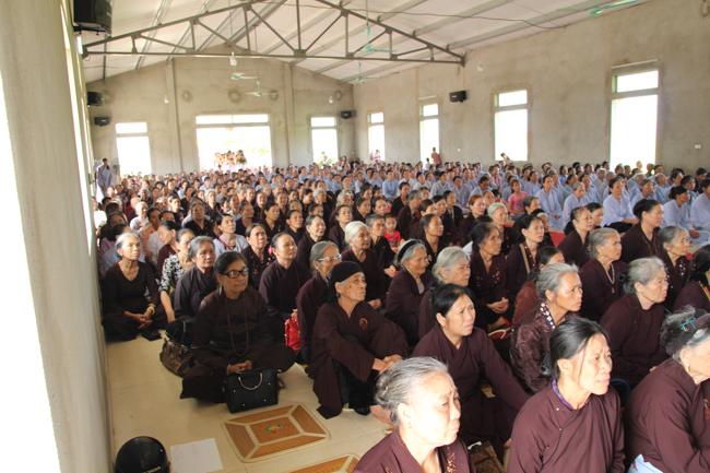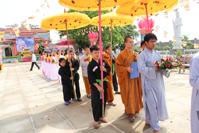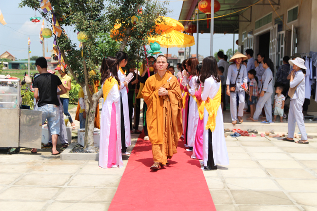 After the performance of the singers and Buddhists from Dong Cao Pagoda to welcome the Buddha’s Birthday, at 9: 00, after the three intellectual bells were ringing, the Buddhists hold their hands together to welcome venerable monks and nuns coming to the lecture hall.