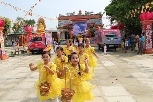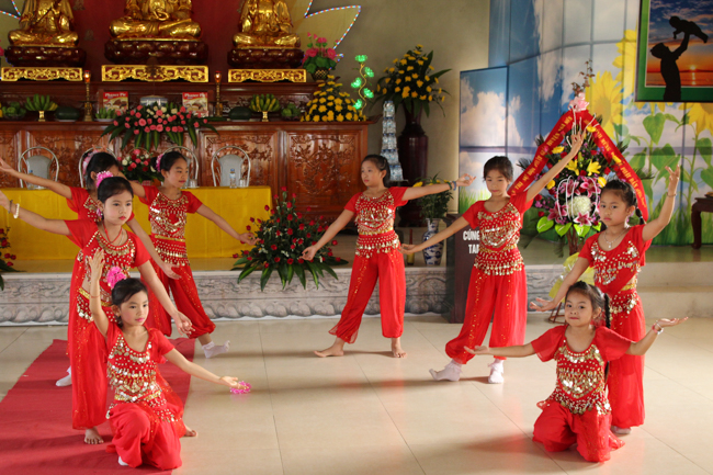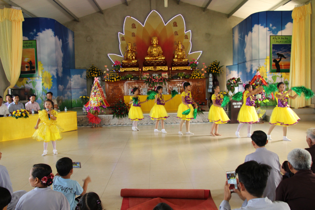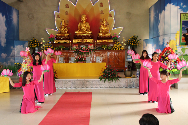 Continuing the program, the children of Dong Cao pagoda ‘s Buddhist family were dedicated to the Buddhas and Holiness the most beautiful flowers.
