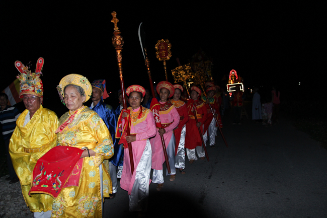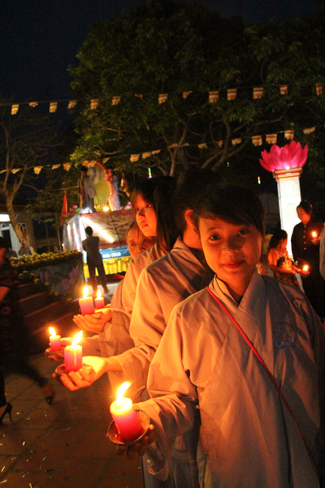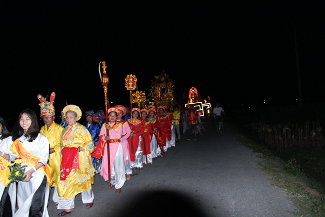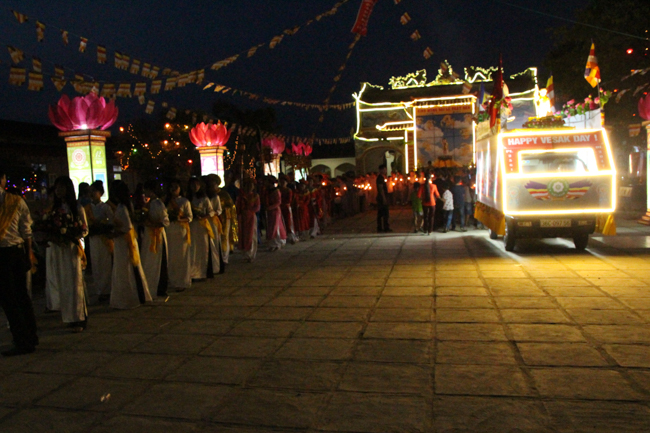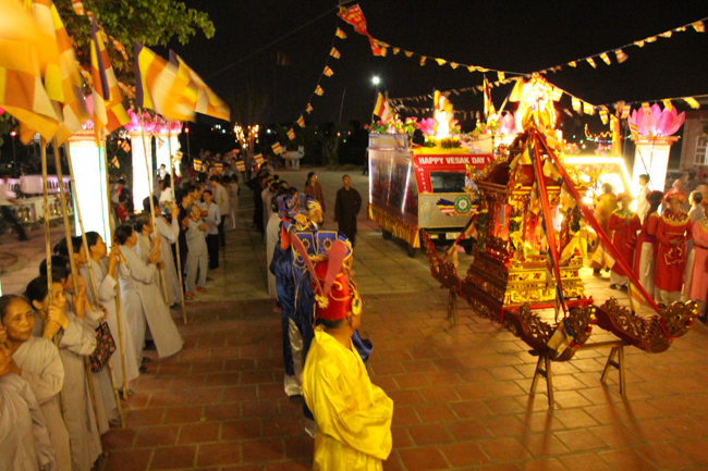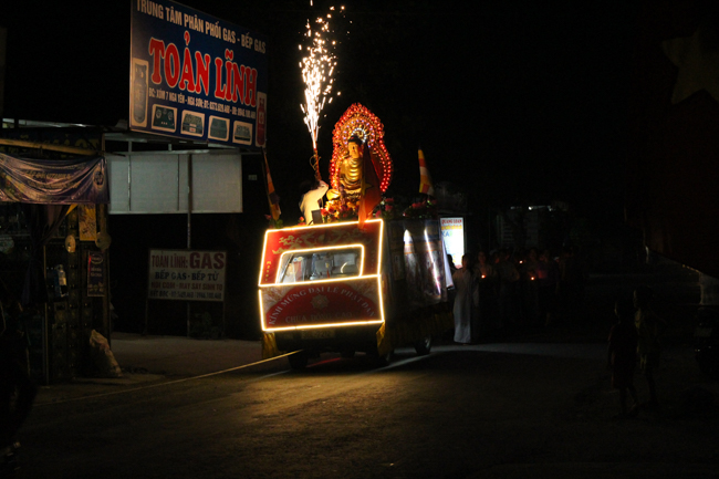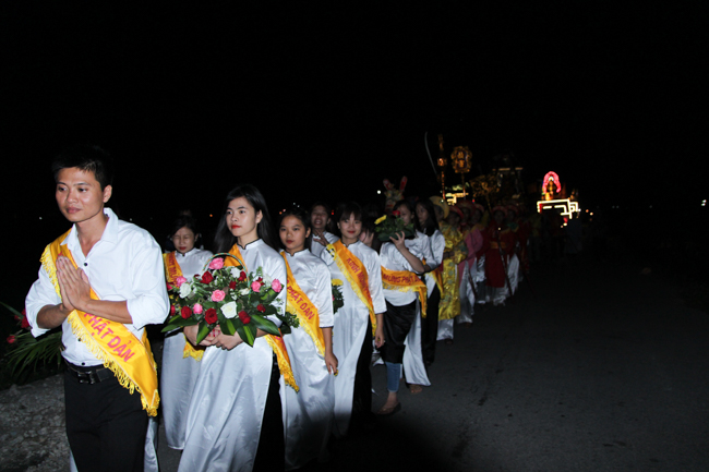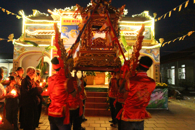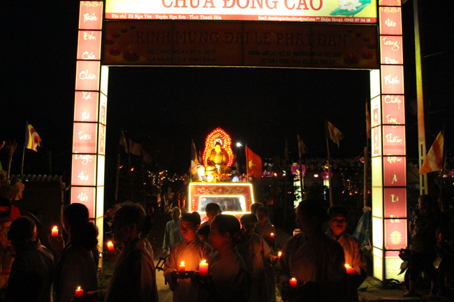 In the evening, for the first time in Nga Son land, the Buddhists participate the palanquin celebration with procession to welcome the Buddha's birthday in the solemn atmosphere.