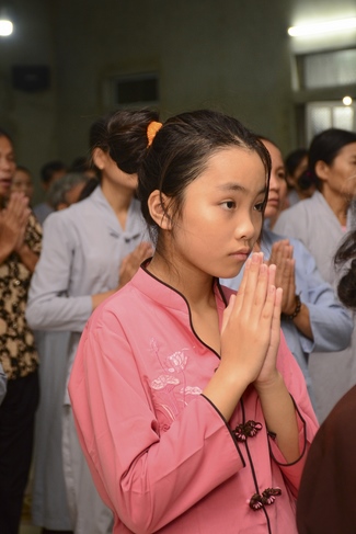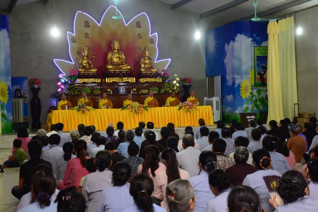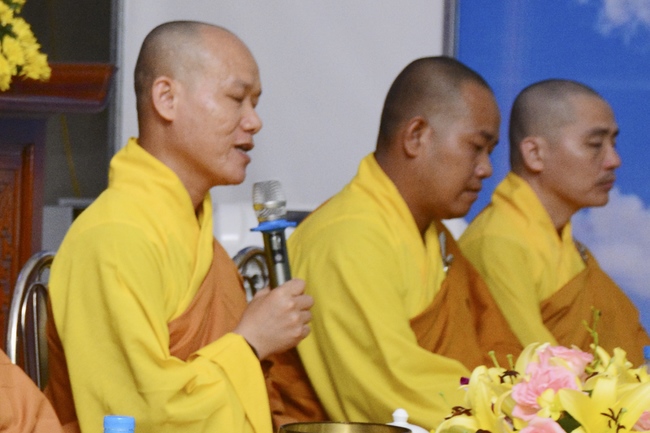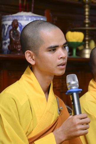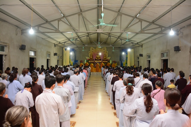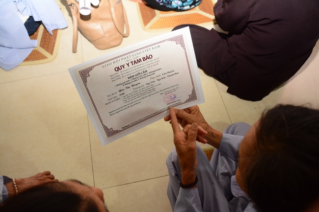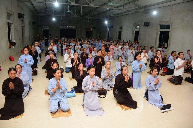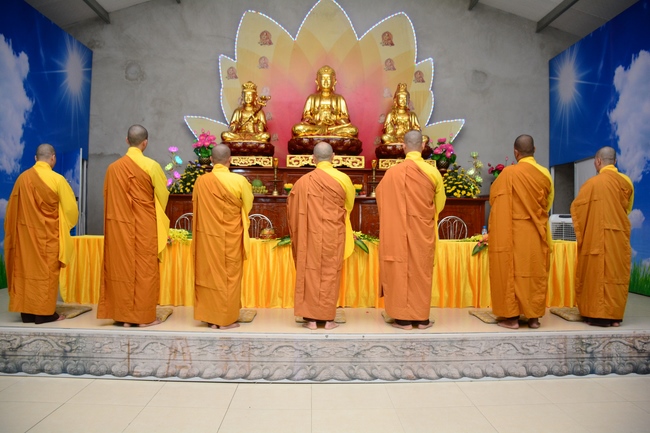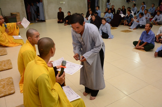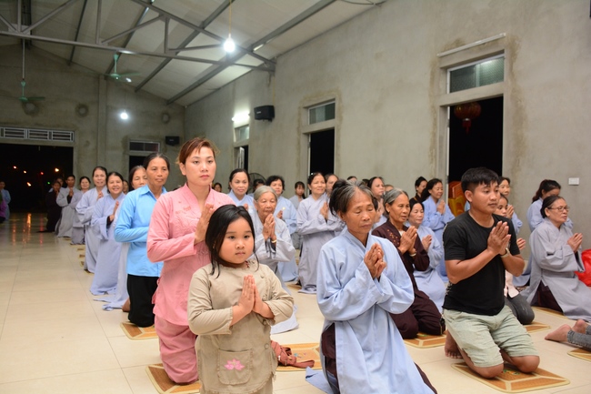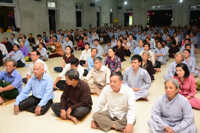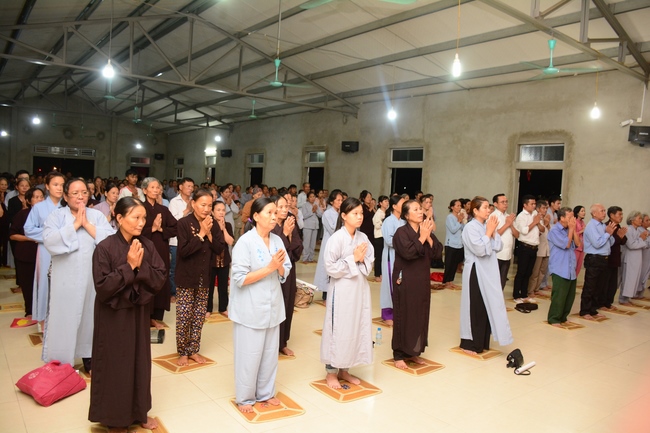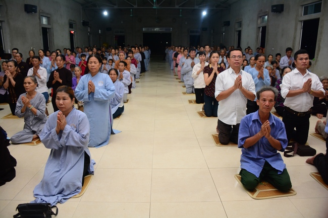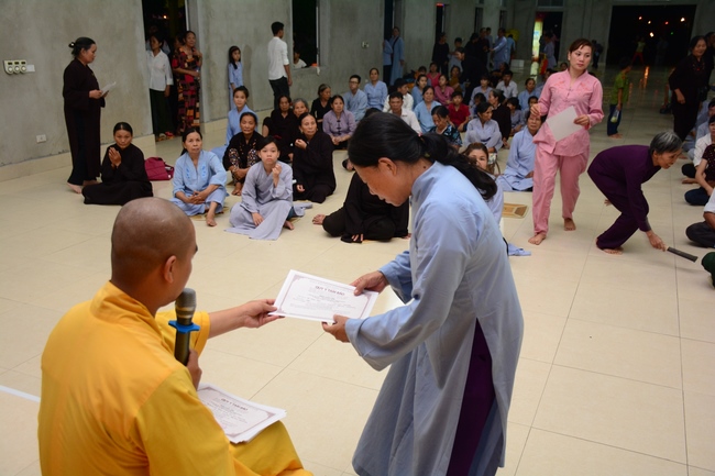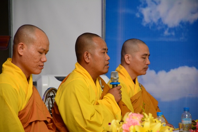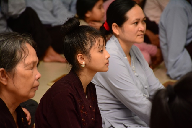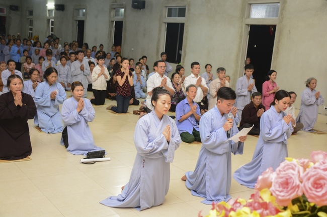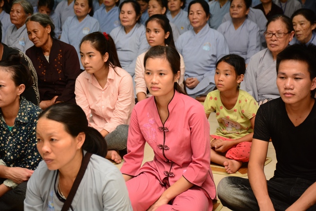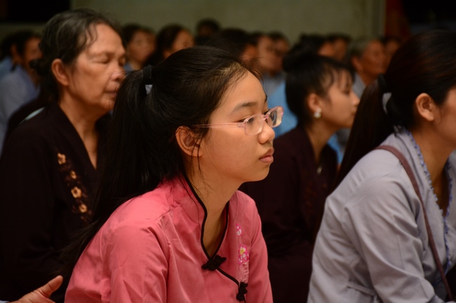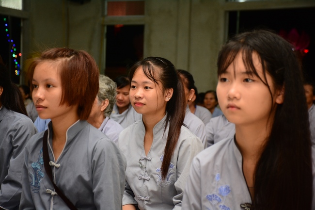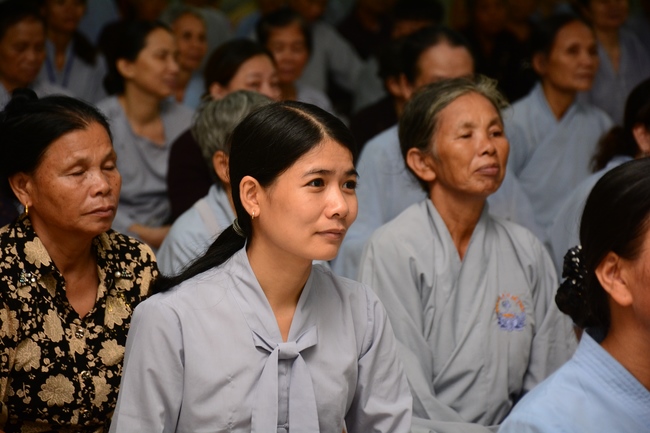 The ceremony began with the rite offering to the Buddha at 9 A.M. The monks interpreted detail about five precepts of a lay man. Moreover, Senior Ven. Thich Chan Tinh had some words encouraged to the mass as well as mentioned the responsibilities of a home-living Buddhist. All of them extremely concentrated on this because they understood the ceremony’s significance for listeners who want to become a sincere Buddhist. It is difficult to meet a good Master who was instructing their cultivation. To the section of precepts transferring, all attendees kneed down and clasped their hands together, headed to Triratna and vowed that all their life would take the refuge on the Buddha, Dharma, Sangha, as well as received five precepts by the Senior transferred.
