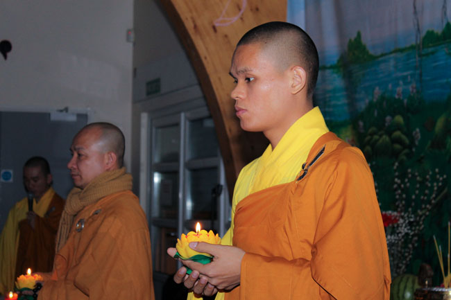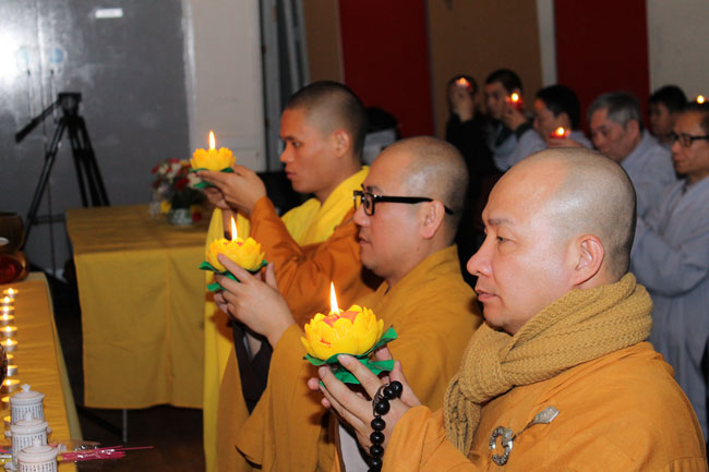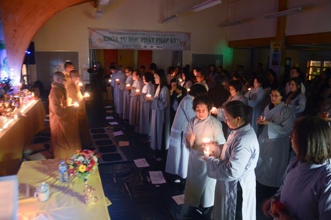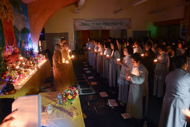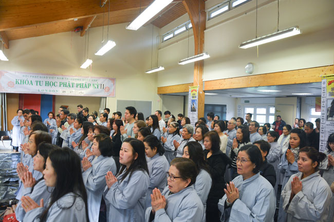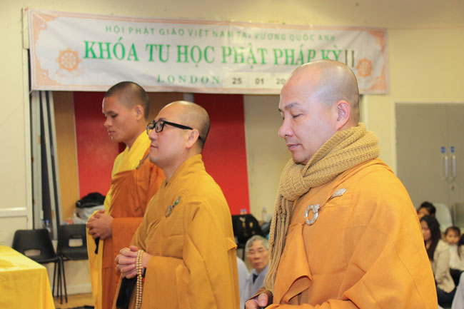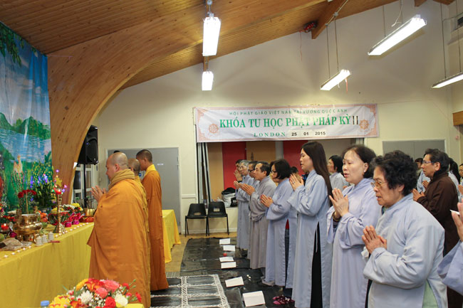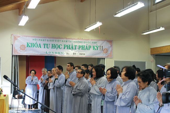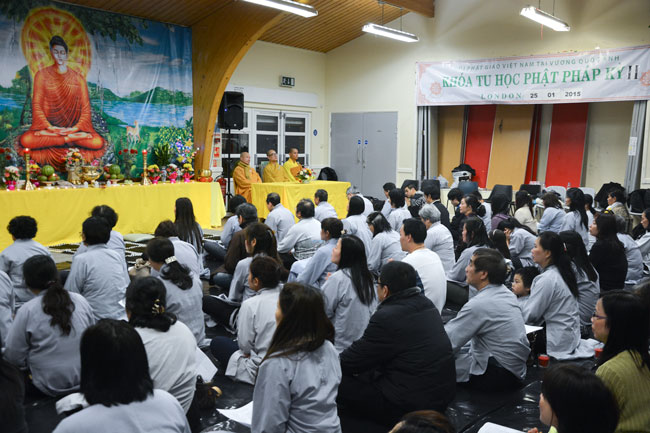 The retreat started from the morning of Jan. 25th, 2015,\r\nwitnessed by Senior Ven. Thich Le Nguyen - the Chief of the Vietnamese Buddhism\r\nAssociation in England; Junior Ven. Thich Tri Hue – Abbot of Phap Tang pagoda\r\nin HCMC. After the opening operation of the cultivation course, all Buddhists\r\nlistened to a dharma talk by Junior Ven. Thich Tri Hue, who preached on the\r\ntopic “The meaning and process of the Buddha’s Enlightenment attaining of\r\nBodhisattva Siddhartha. In simple, humorous, real words, he deeply interpreted\r\nthe Buddha and His dharma.