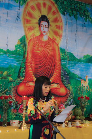 After preaching, the Buddhists chanted the peaceful praying\r\nsutra, practiced the Buddha name chanting, vowed for the peaceful country and\r\nthe happiness people, calm and temperate weather, the dead ones to bebecome\r\nreleased, current people to be peace and contentment, everything to\r\nbe good and satisfied.