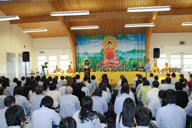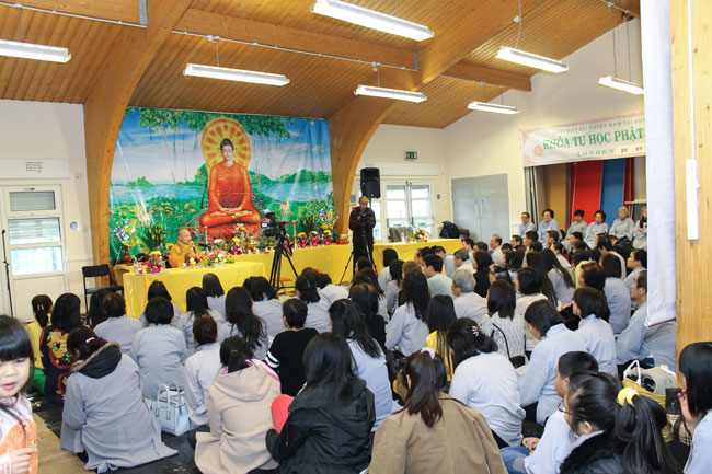 On harmony with the glad atmosphere of welcoming this\r\nspecial event, by instruction of Senior Venerable Thich Chan Tinh, Junior\r\nVen Thich Tam Nguyen and Thich Tam Loc - the monks of Hoang\r\nPhap pagoda, who arrived the United Kingdom to help The Vietnamese Buddhism\r\nAssociation in England organize the 2nd time of the Buddha\r\ncultivation Course, attending nearly 300 Buddhists in London and nearby\r\nprovinces.