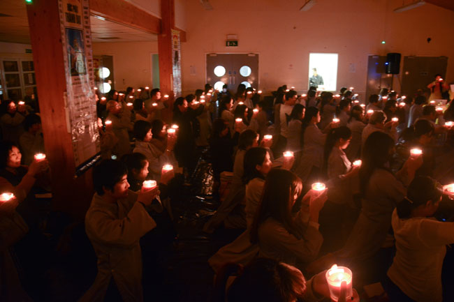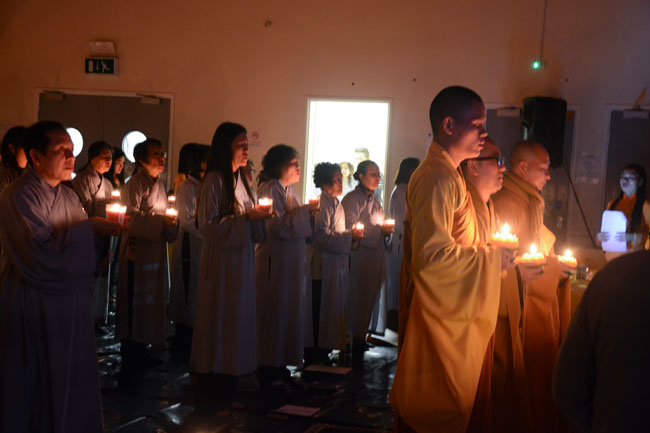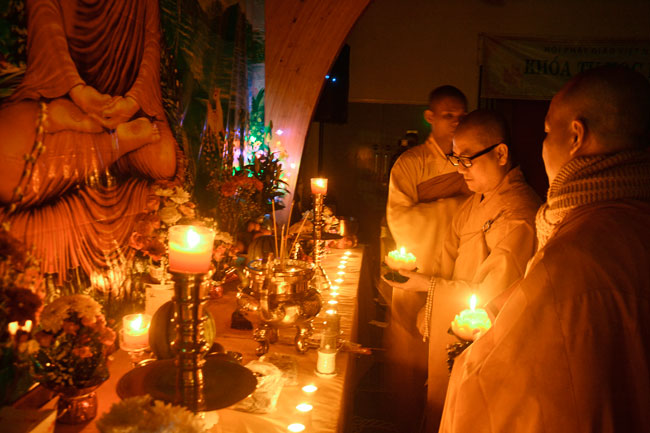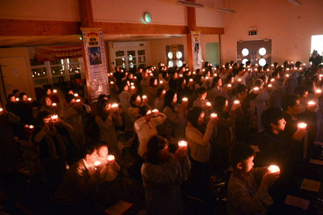 In the evening of same day was the ritual transmitting\r\nlights. The sparkling, small candles were transferred together, which brings\r\nthe endless wisdom light and spreads the unlimited love to everyone. Wishing\r\nthat its light will travel widely, dispel the dark, and send the wise material,\r\nBuddha Sakyamuni’s love to all places, where there is sleeping deep of\r\nignorance and it will offer their sincere heart to show gratitude to Him, who\r\nleads the way, instructs the beings of knowing the Buddha dharma and looking\r\nfor returning of their self nature.
