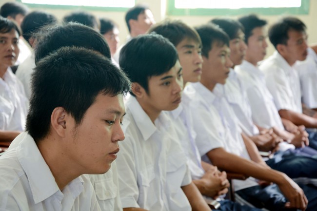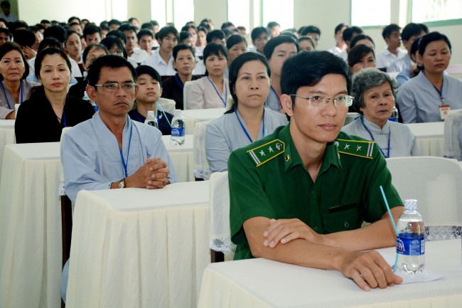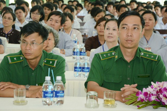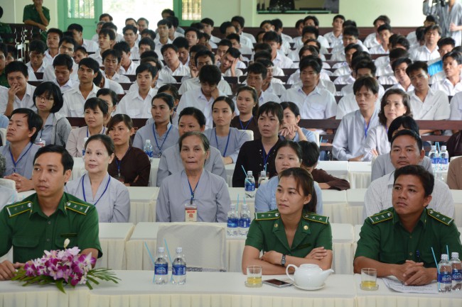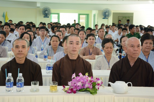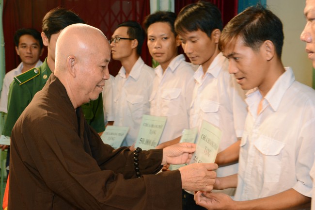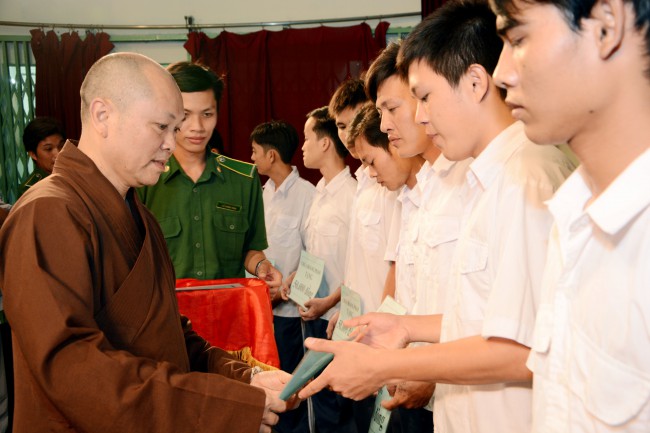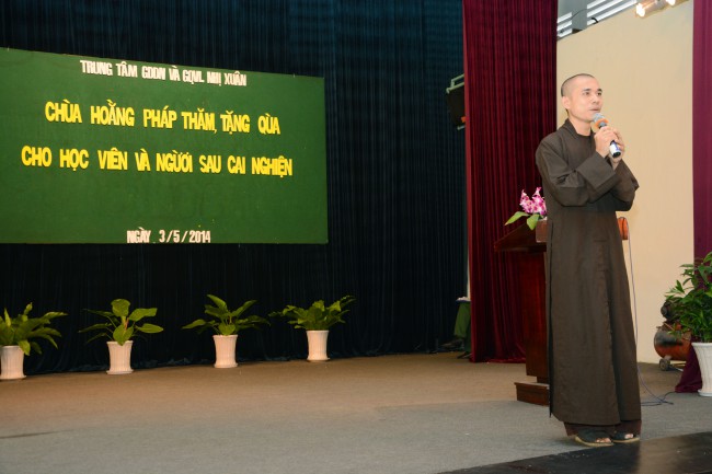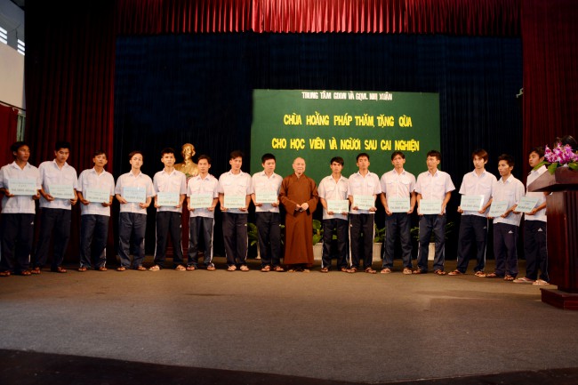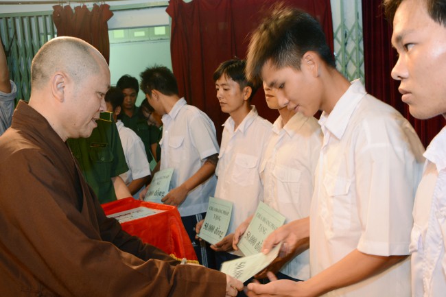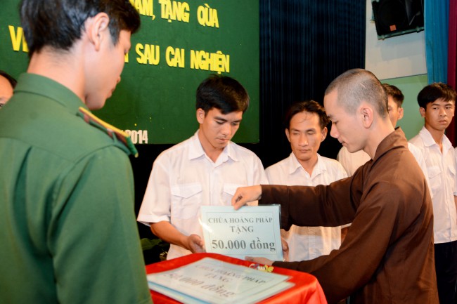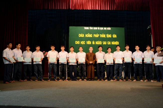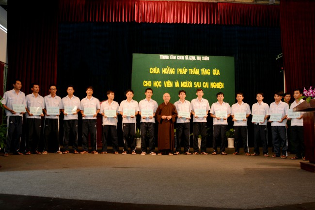 In the morning of May 3rd, 2014 (April 5th, Horse Year), on the occasion of the charity trip to welcome the Vesak Day, 2558 BE, Senior Ven. Thich Chan Tinh, the Monks and 60 Buddhists of Hoang Phap pagoda visited and donated 1200 gift (with total value of 60 million VND) to teenagers who undergo detoxification at the Nhi Xuan educational, vocational and employment support center Hoc Mon district, Ho Chi Minh city.