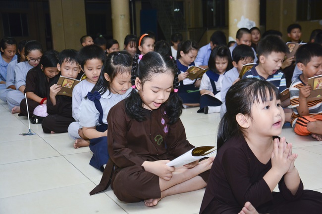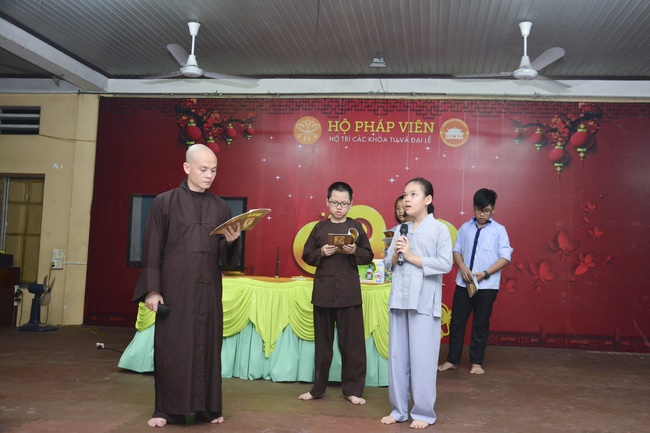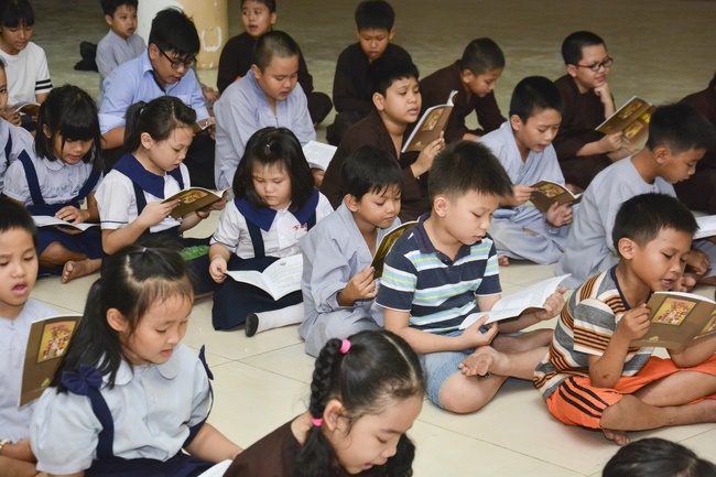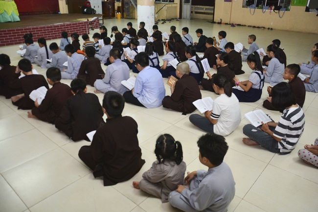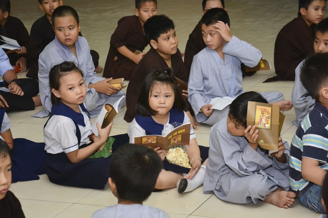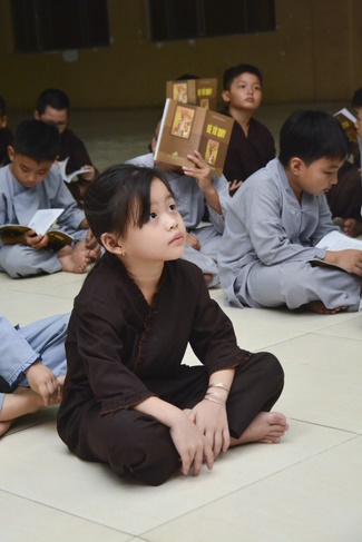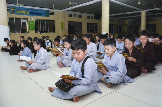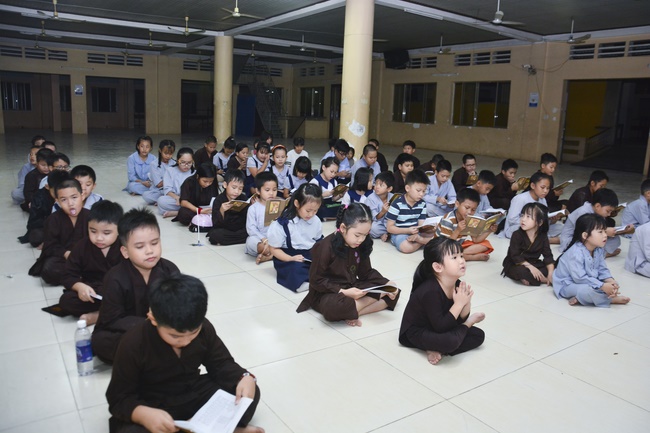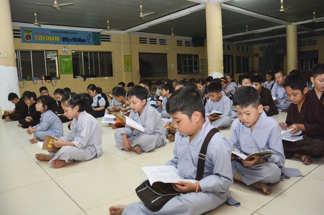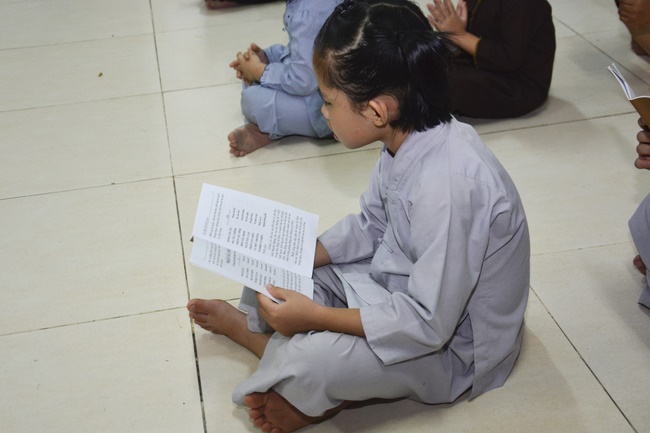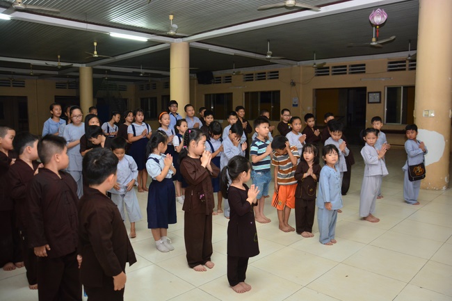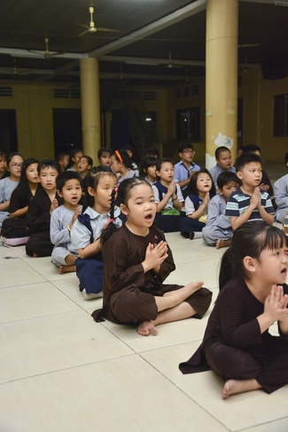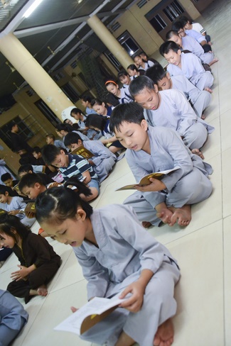Besides, the pagoda organized the class of sutra learning for the children from 6 to 14 year old on Saturdays’ and Sundays’ evening, being in charge from Ven. Thich Tam Do charges in. The program includes sutra “Causes and Effectsâ€, “Parents’ deeds and our Gratituteâ€, and “Lessons on Lifeâ€. From them, they have the foundation of basic human morality, sowing of good seeds, leading to nice deeds and avoiding evil ones. Particurlarly, they know their parents’ gratitude, as well as good behaviours to grandparents, parents and people around. They are currently good pupils; in the future, the owners of the country.